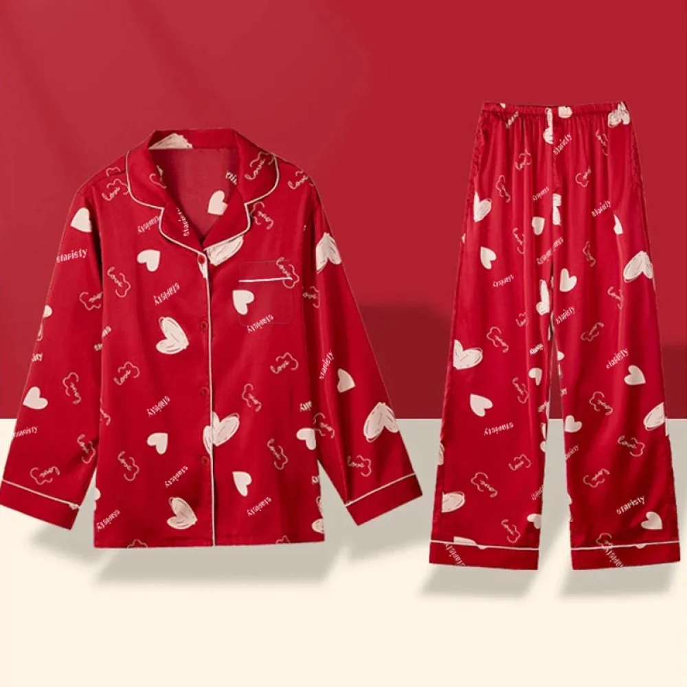 European Style Elegant Classy Fashion Trendy Female Lounges Aesthetics Print Spring Autumn Sleepwear for Women Y2k Sweet Pajamas