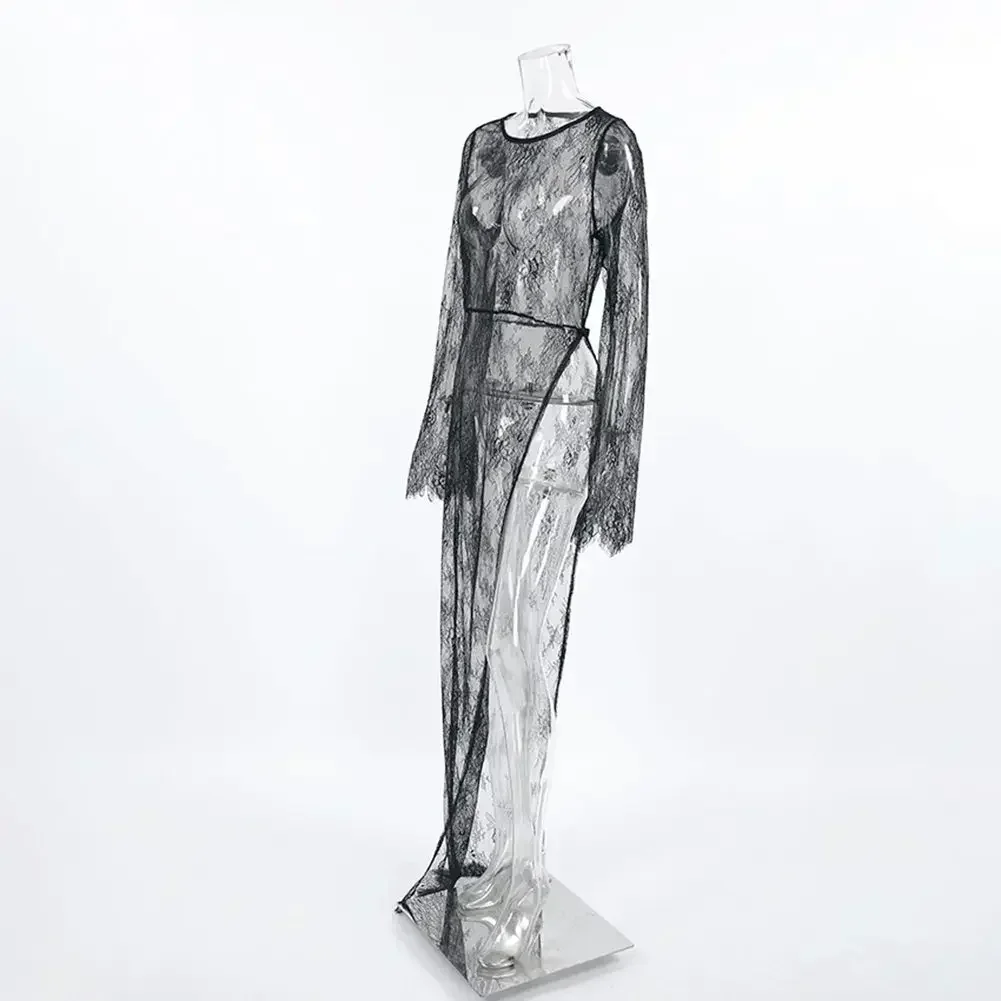 * Item Features:Women,Perspective Sexy O-Neck Long Sleeve Irregular Lace Dress,Fashion High Street All-match Long Pullover
