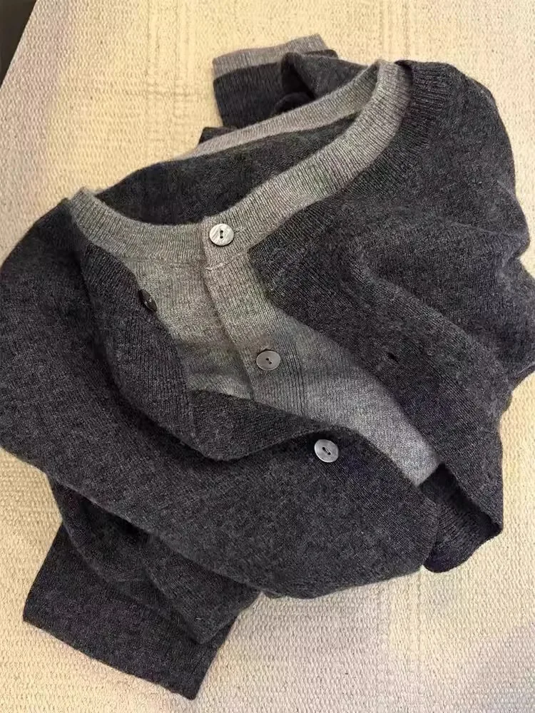 20 reviews for Fake two 100% pure cashmere sweater cardigan dark grey high-grade wool knit coat top