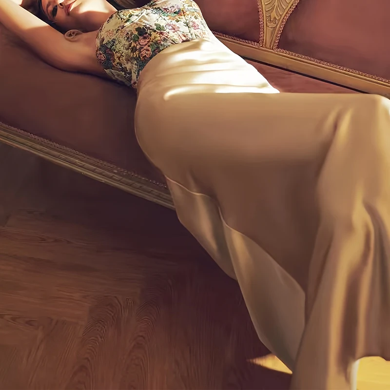 Fashion Backless Hollow Out Long Dress Printed Patchwork Slim Fit A-line Dress Summer Ladies Sexy Strapless Satin Evening Dress