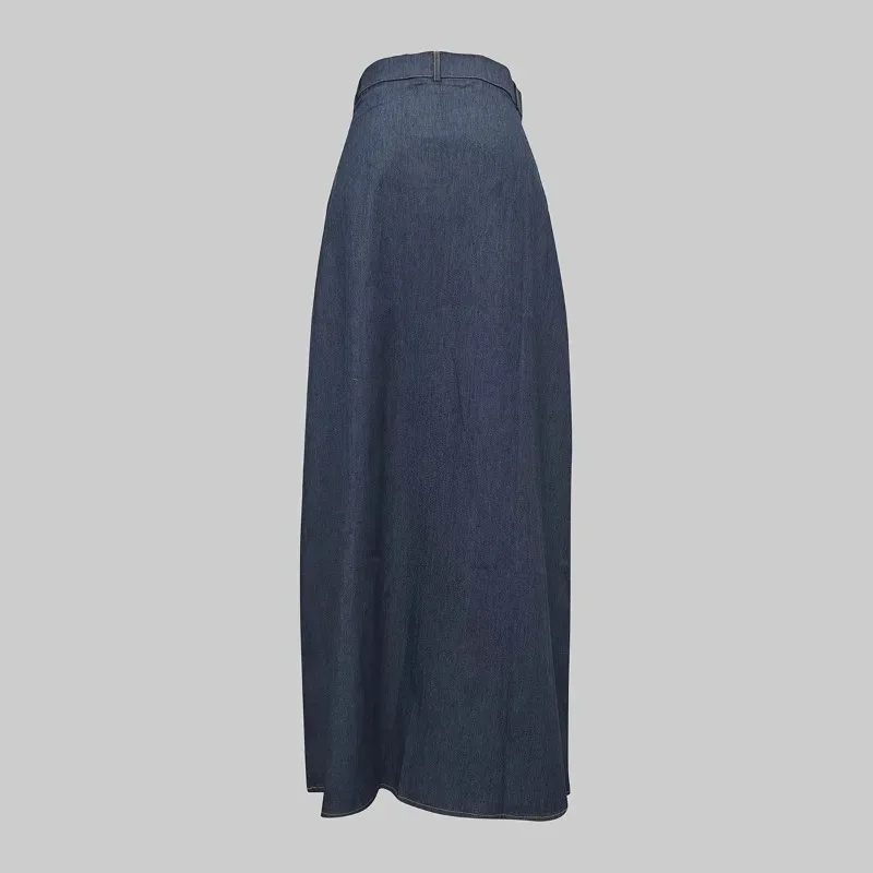 Fashion Imitation Denim H-Line High Waist Skirts Spring Summer Loose Solid Color Pockets Maxi Skirt For Women