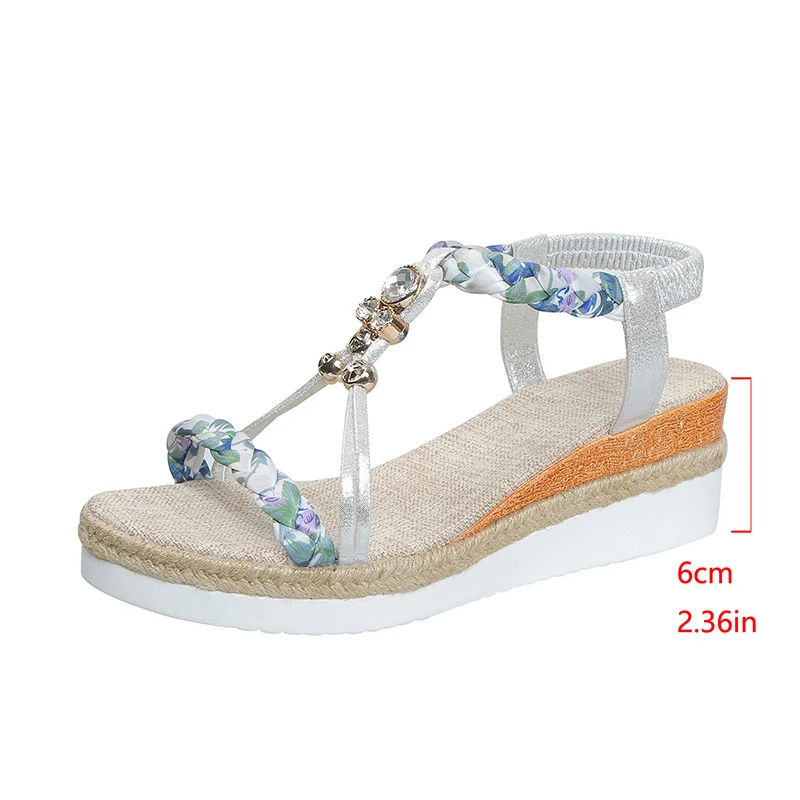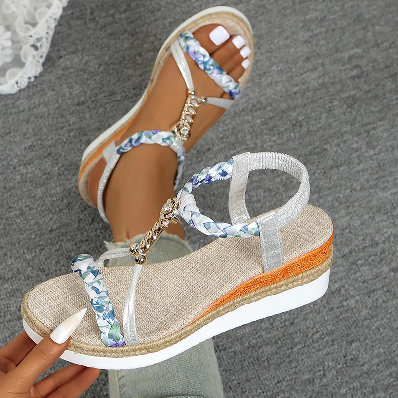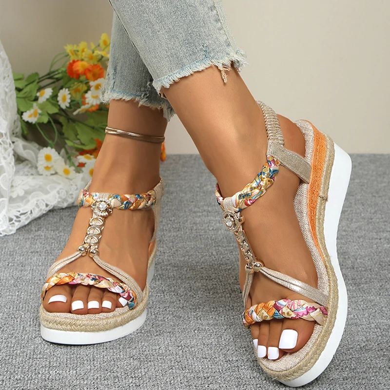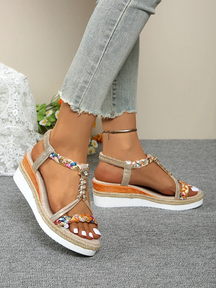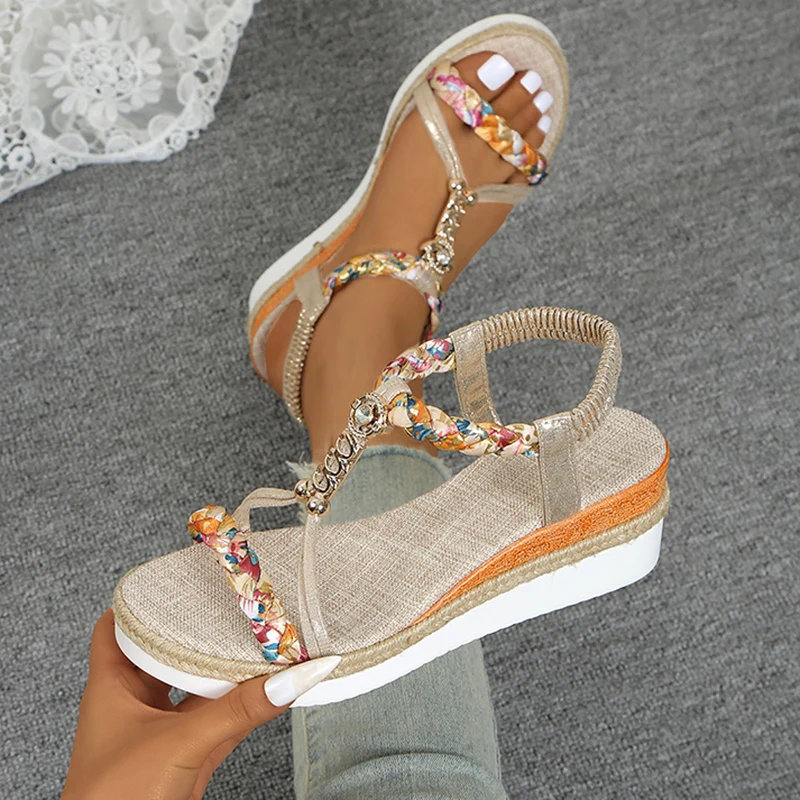 Fashion T-Strap Platform Sandals for Women New Mix Color Elastic Band Wedge Sandals Woman Summer Daily Open Toe Sandalias Female
