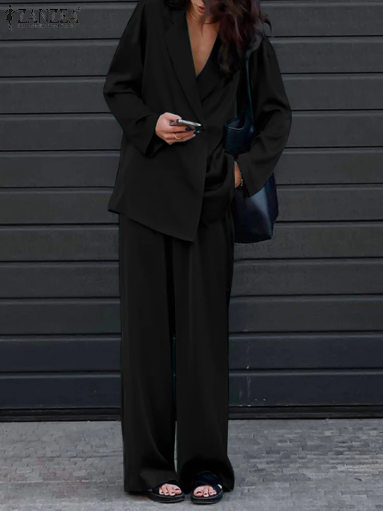 Fashion Women Loose Pants Sets 2023 ZANZEA Long Sleeve Shirts Wide Leg Pants Oversized Office Lady Outfits Tracksuit Streetwears