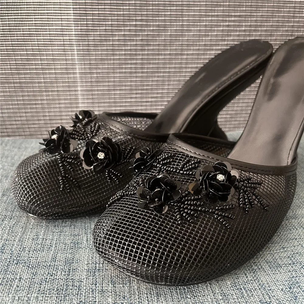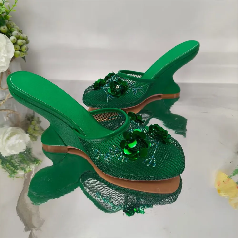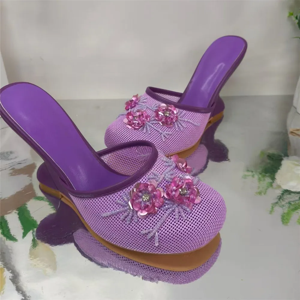 Fashion Women Summer Wedges Mesh Shoes For Woman’s Flower Round Toe Slip-On Hollow High Heeled sandals Mujer Party Wedding Pumps