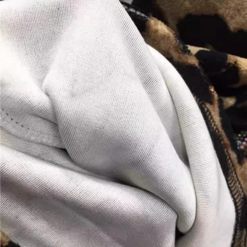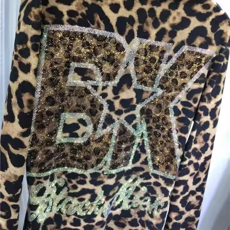 Fat people wear a 300-pound oversized rhinestone diamond women’s turtleneck T-shirt thick leopard print long-sleeved top
