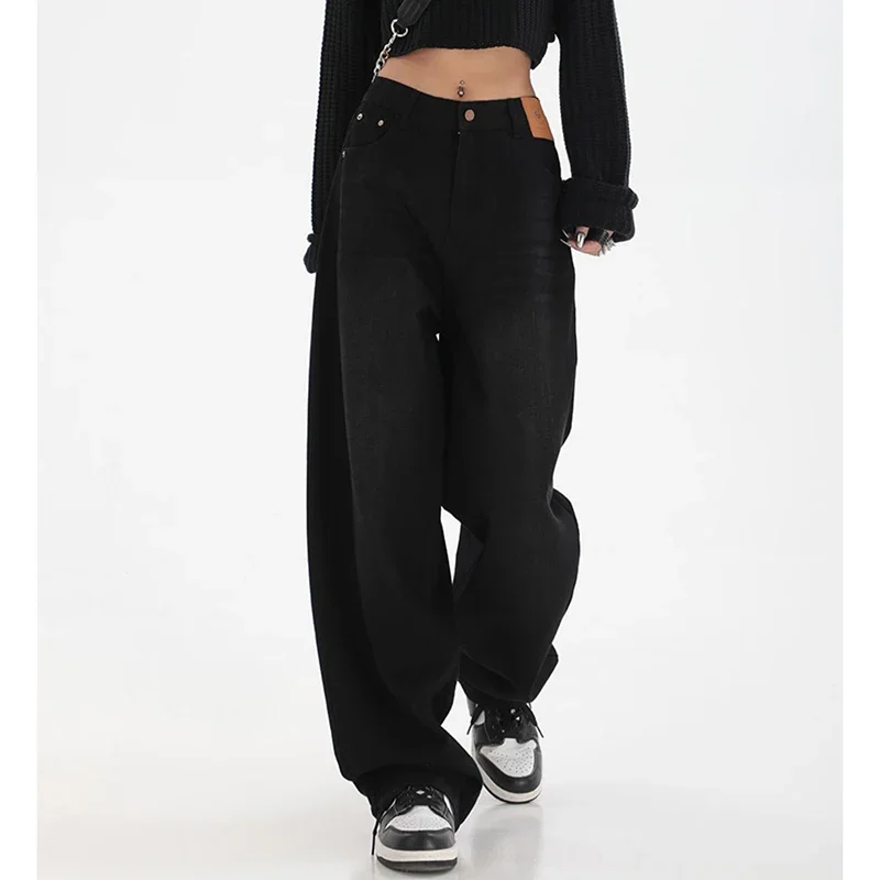 Female Classic Retro High Waist Baggy Jeans Women Korean Daily Straight Leg Denim Trousers Girls Comfortable Long Pants