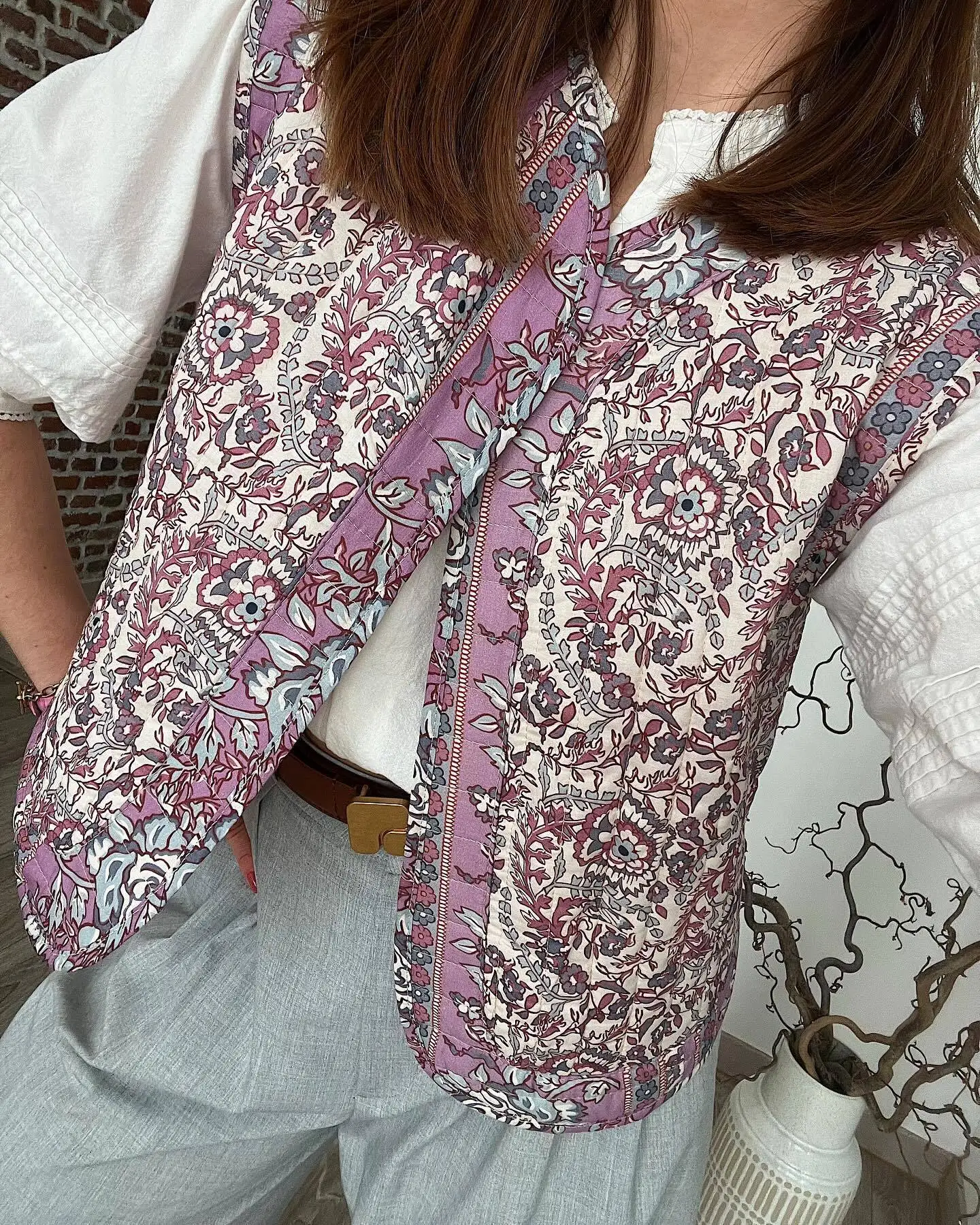 Floral Print Quilted Woman Vest Sleeveless Open Front Loose Female Streetwears retro national style ladies Tops girls Outwear