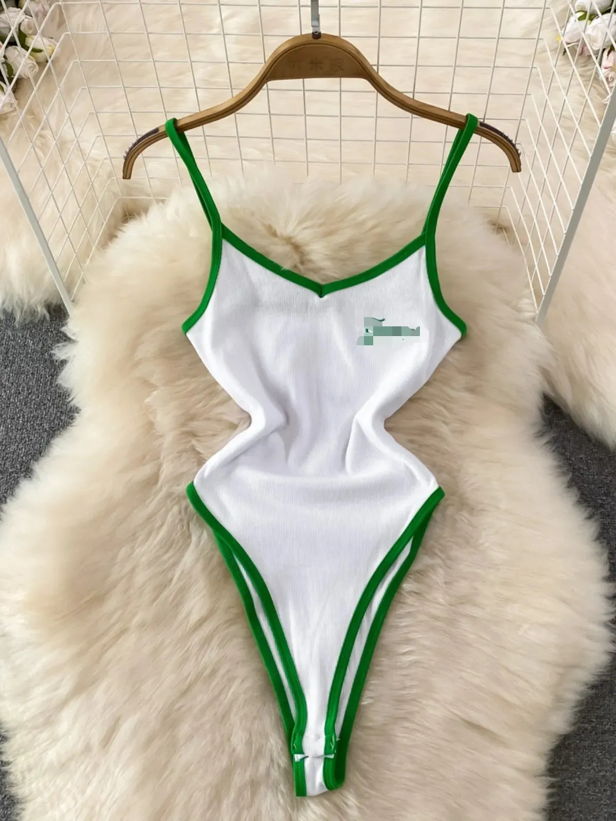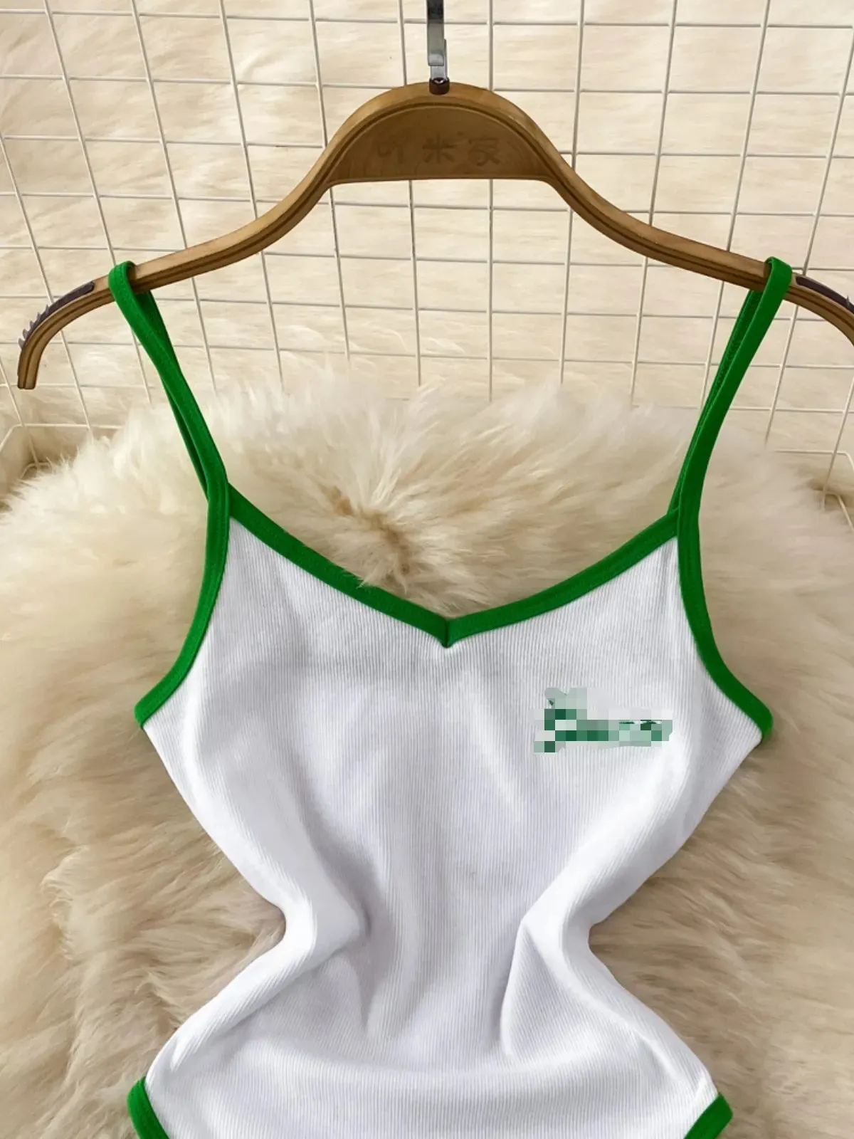 Foamlina Summer Spice Girl White Suspender Vest Bodysuit Top Women’s Retro Slim and Skinny Sleeveless Bottom Jumpsuit Top