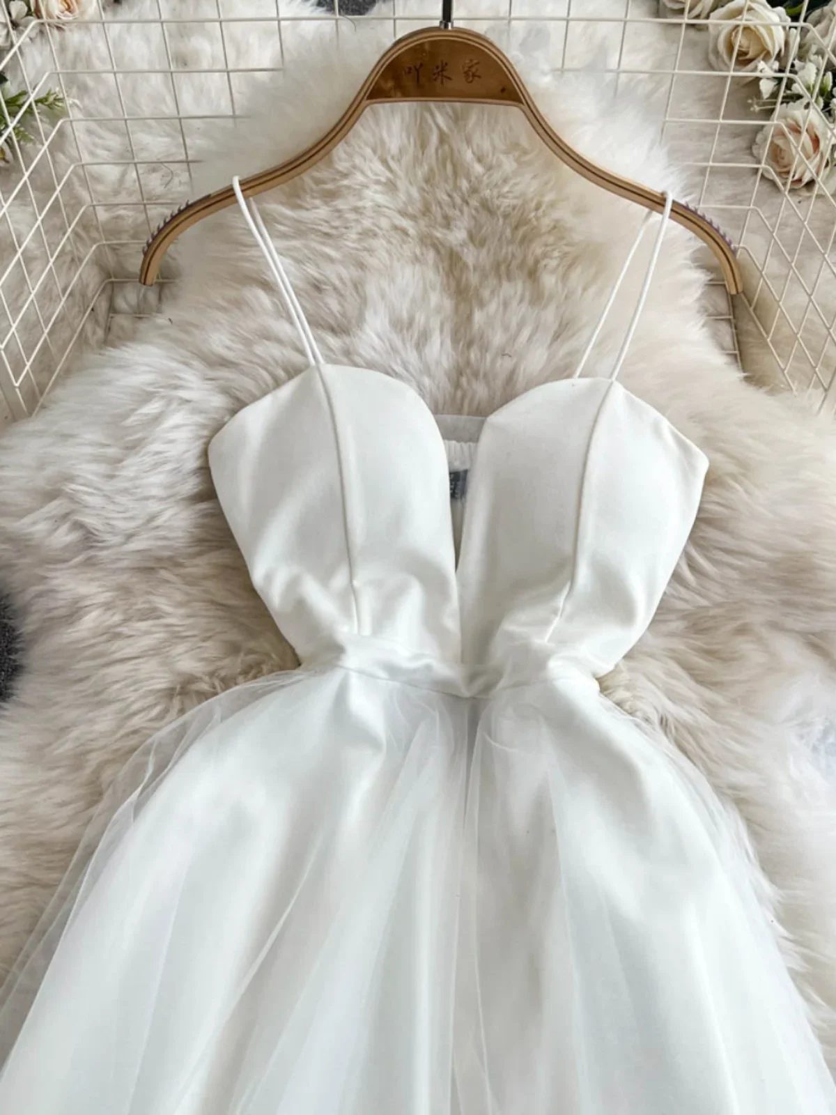 Foamlina white Princess Dress Women’s Spring Autumn 2025 New Waist Tight Backless Black Mesh Splicing Tube Top Tutu Dress
