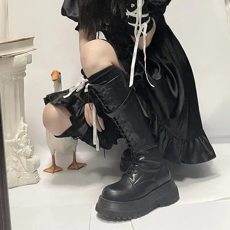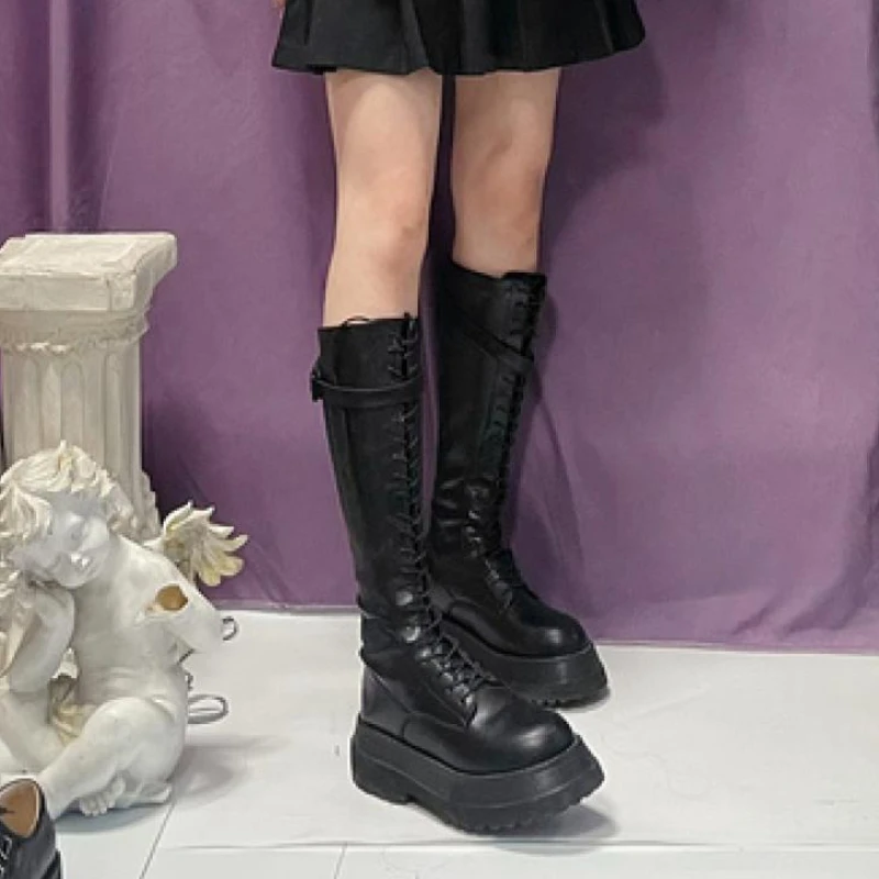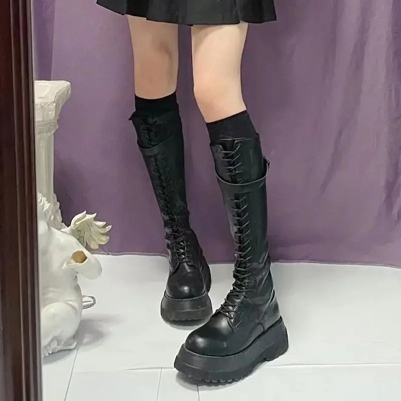 Footwear Lace-up Shoes For Woman Platform Women’s Boots With Laces White Long Winter Knee High Shaft Sale Hot Stylish Goth