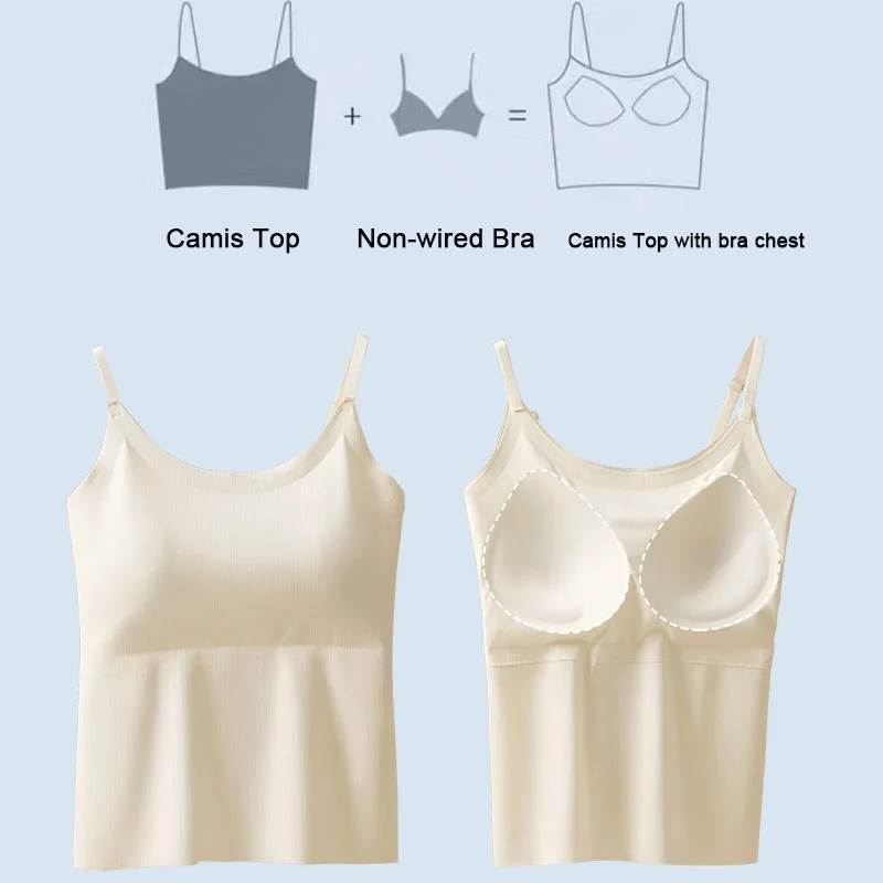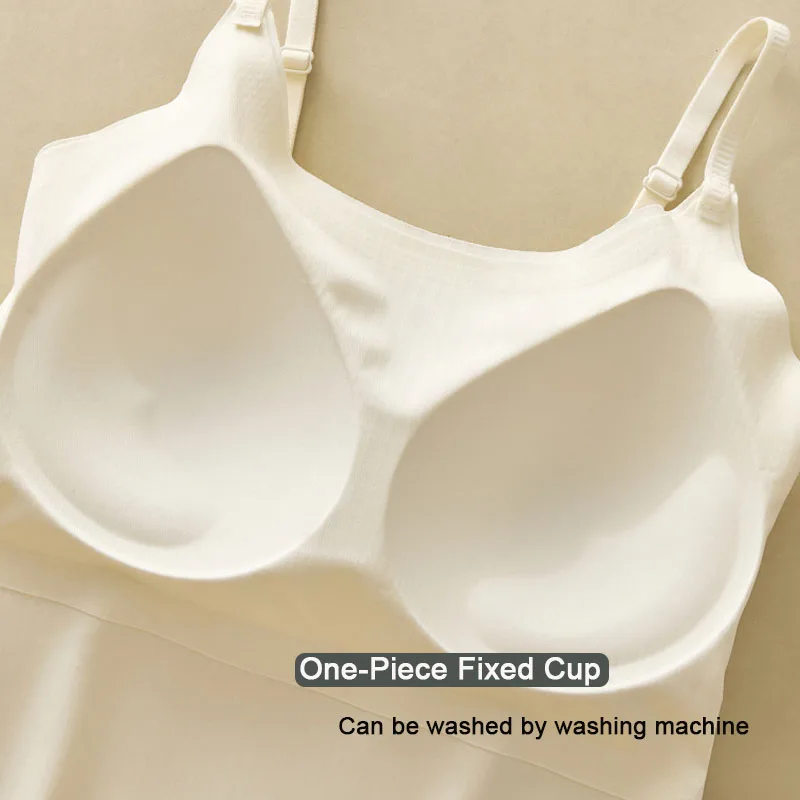 For 40-115kg Summer Ice Silk Camisole Top With Build-in Bra For Women Beauty Back Underwear W Fixed Cup One-Piece Bottoming Top