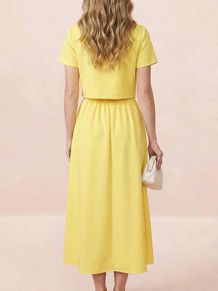 Freeacy Women’s Floral Printed Dress Sets Short Sleeves Cropped T-shirt & High Waist Pleated Skirt 2026 Elegant Party Wears