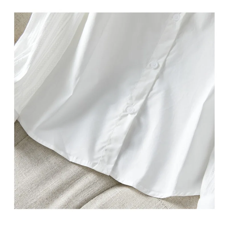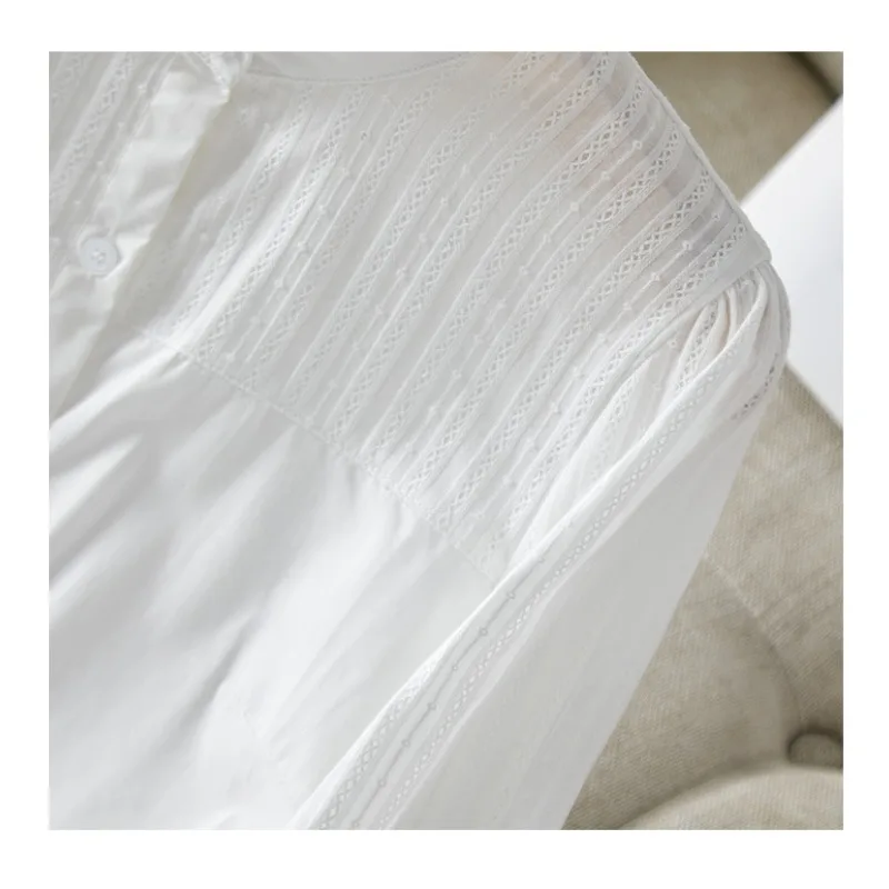 French Retro White Blouse: Floral Jacquard Notch Collar Oversized Shirt for Women, Korean Style Breathable Plus Size Top