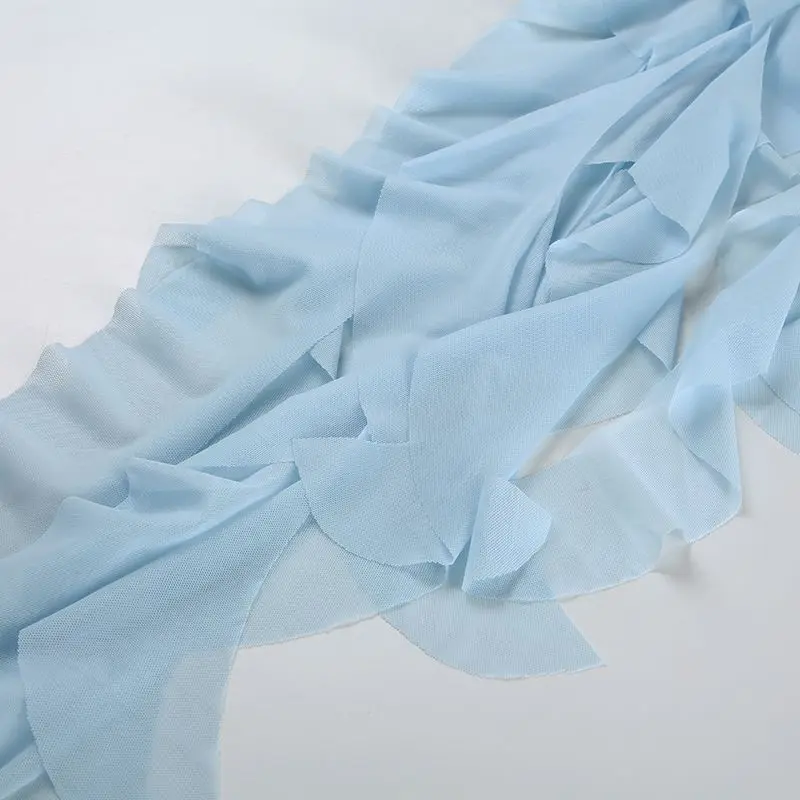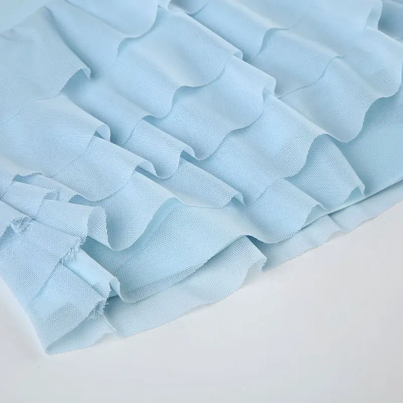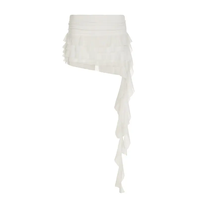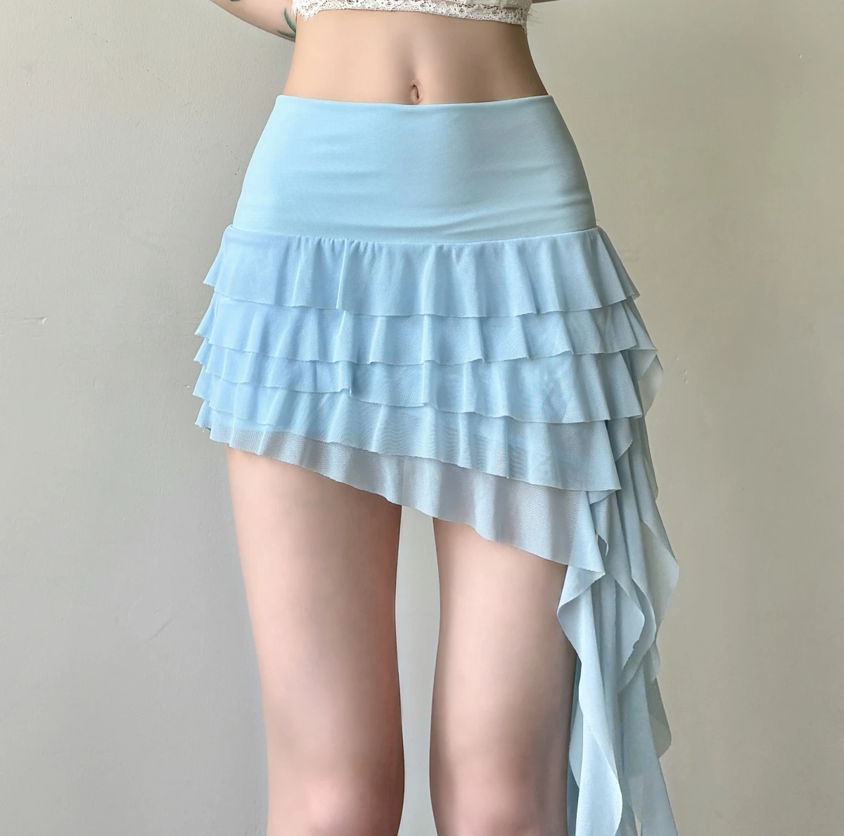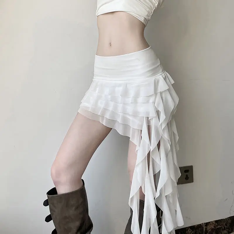 French Vintage Women White High Waist Sexy Ruffle Edge Party Skirt Summer Blue Elegant Slim Versatile Irregular Cake Short Skirt