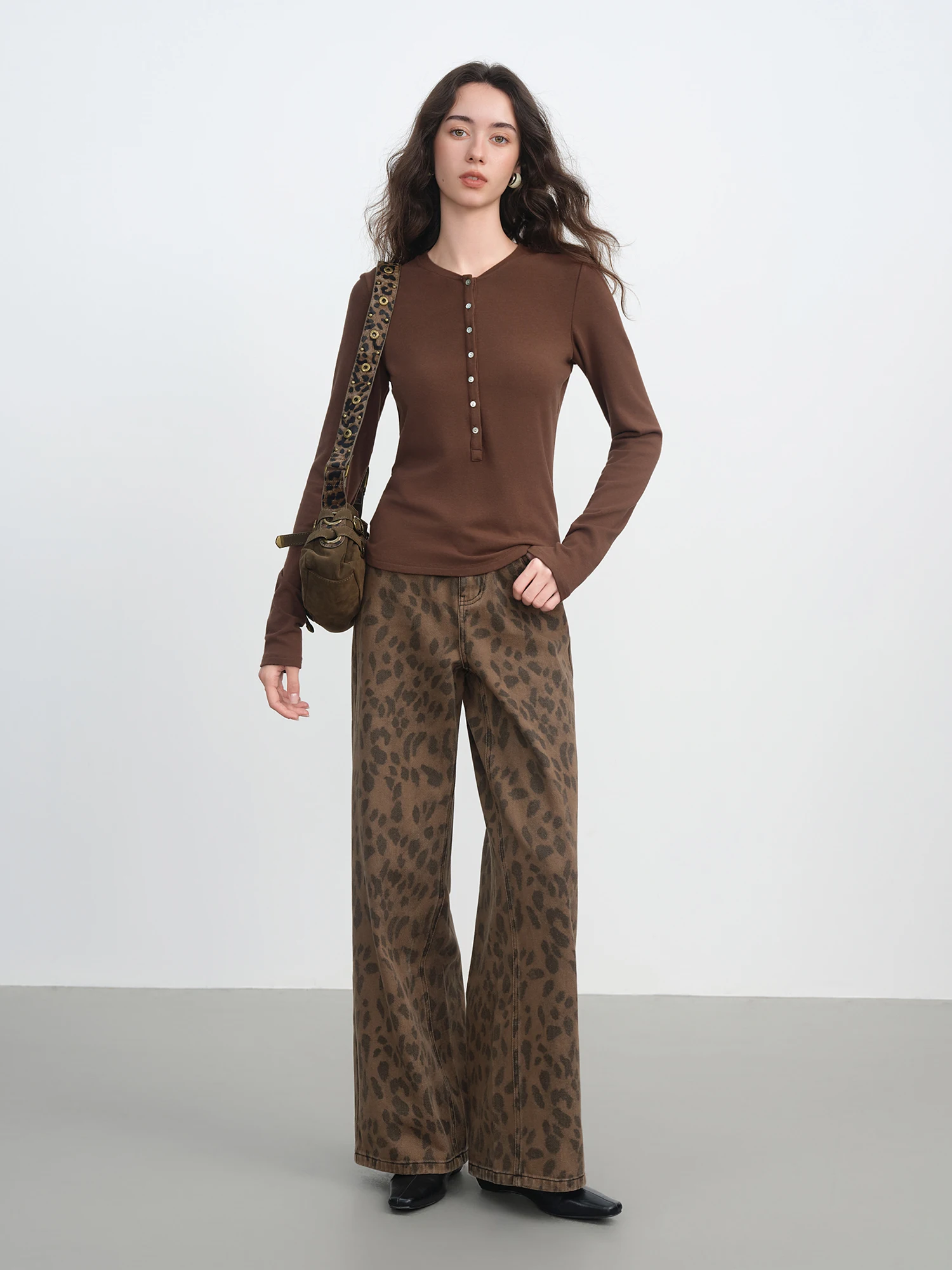 FSLE 2025 New Women’s Jeans Chic Brown Straight Leg Pants Cotton Washed Denim High Waist Tummy Control Slim Fit Casual Trousers
