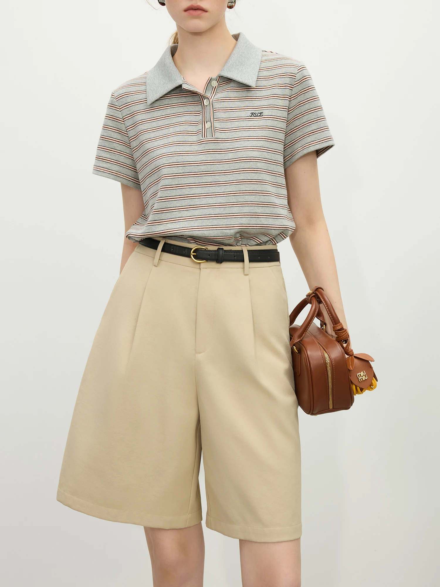 FSLE Polo Collar Retro Knitted Short-sleeved T-shirt Women’s Spring 2025 New Design Elegant Style Tops Chic Outfit 25FS11140