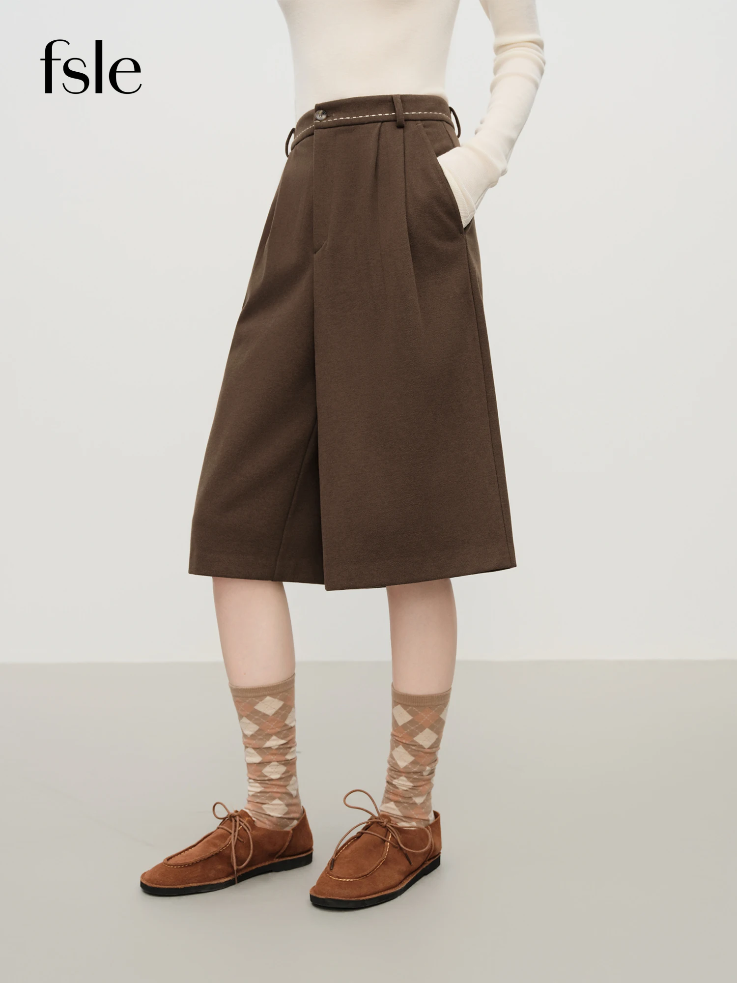 FSLE Retro Straight Shorts Women’s 2025 Winter New Commuter Streetwear Loose High Waist Unisex Cool Girls British Style