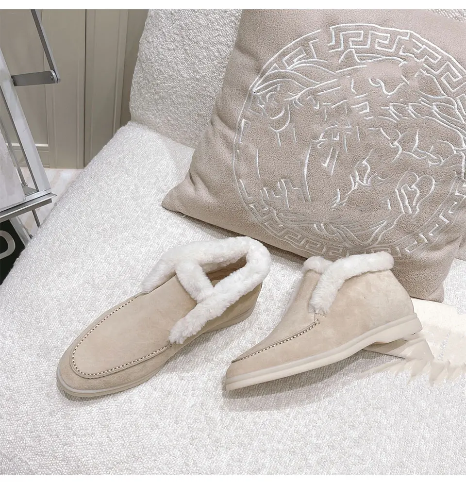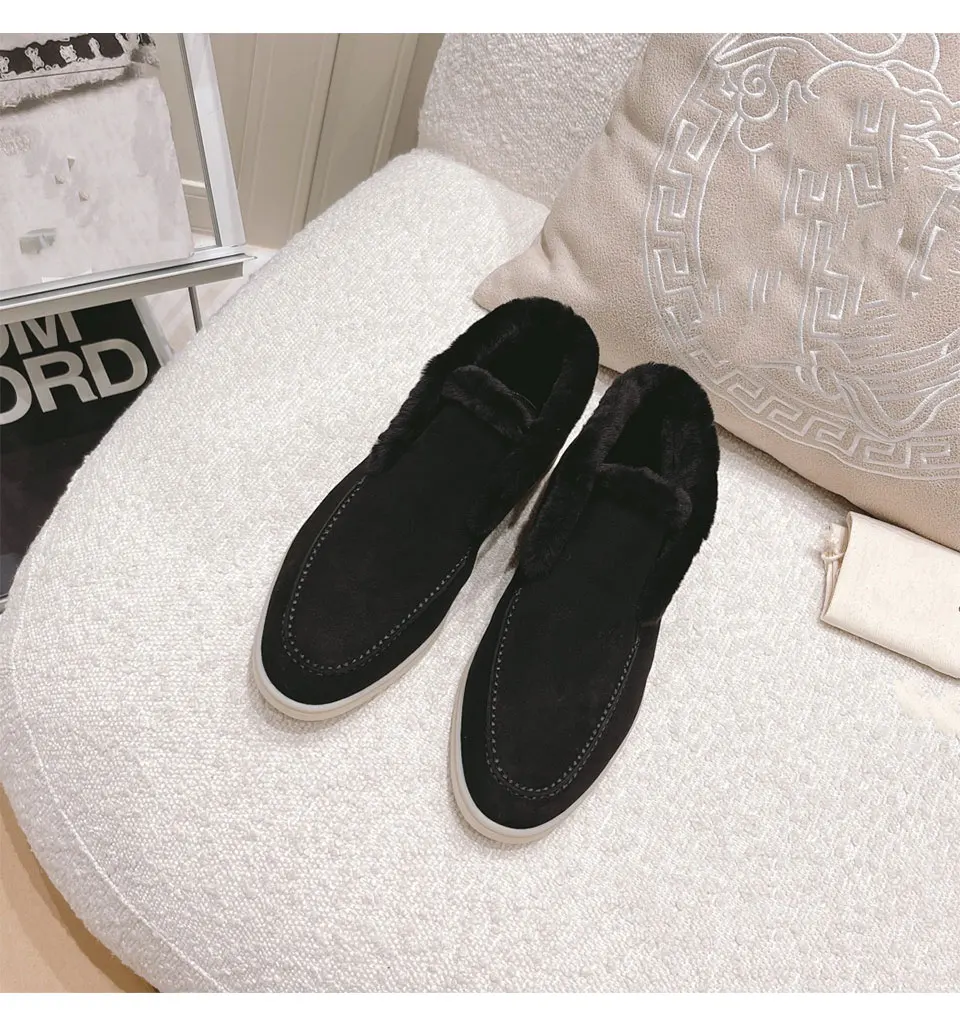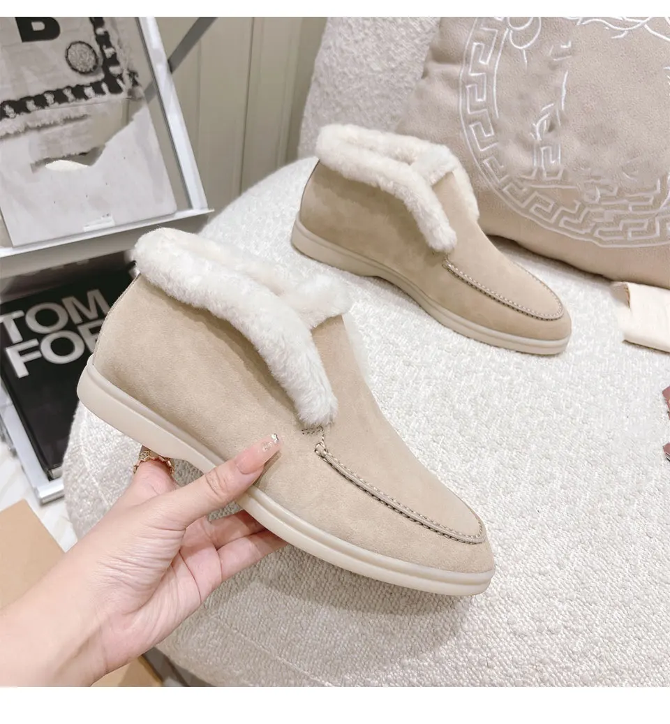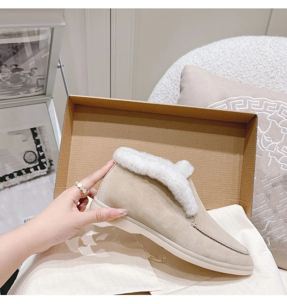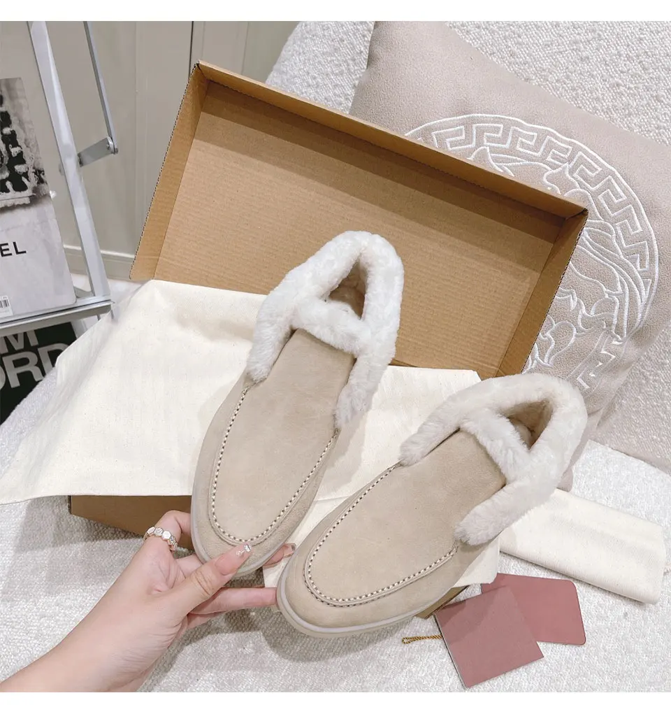 Fur Loafers Flat Shoes Women’s Suede Slippers 2025 Quality Casual Shoes Women’s Winter Wool Snow Boots