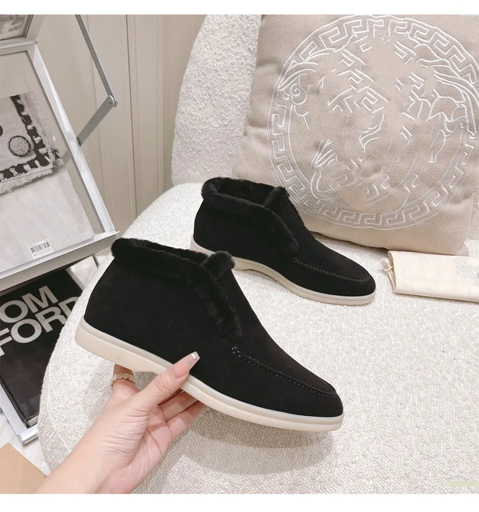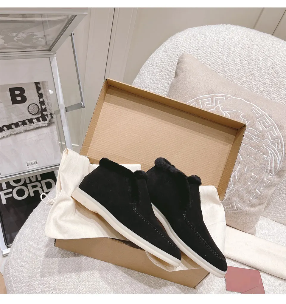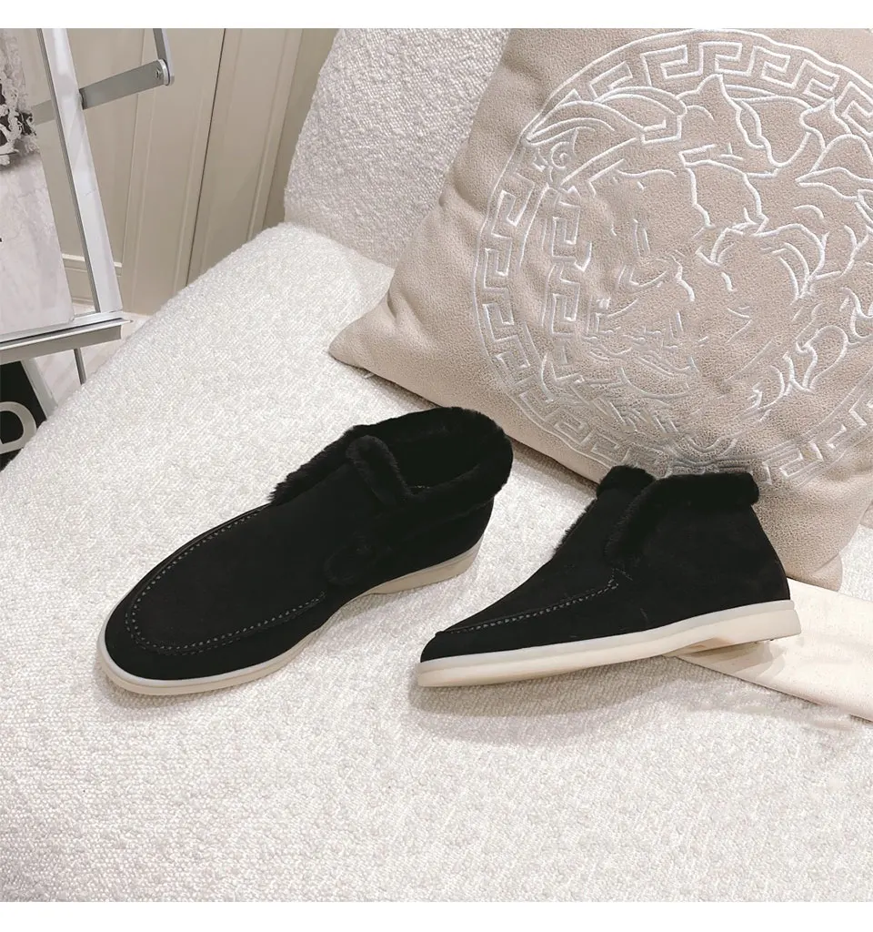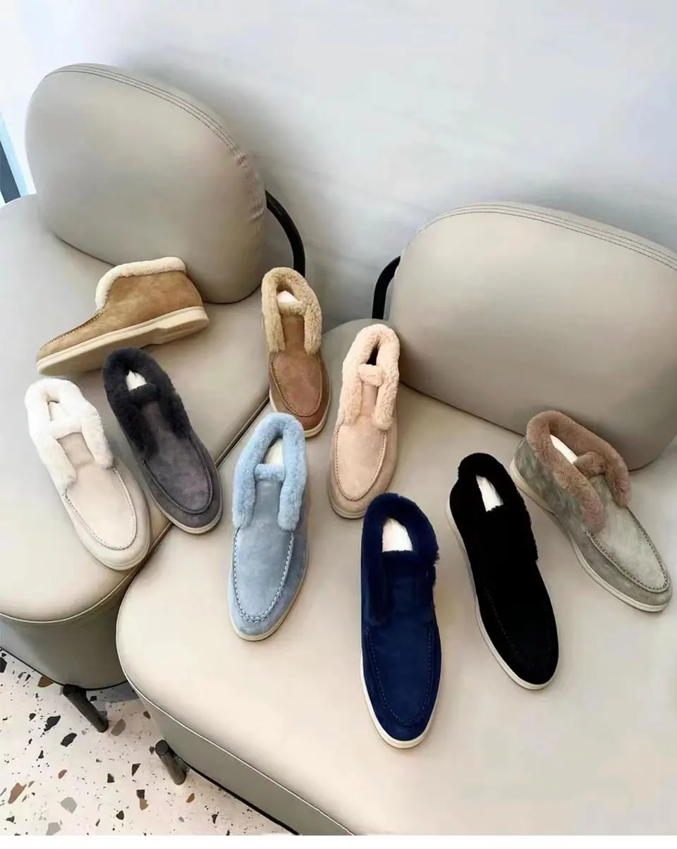 Fur Loafers Flat Shoes Women’s Suede Slippers 2025 Quality Casual Shoes Women’s Winter Wool Snow Boots