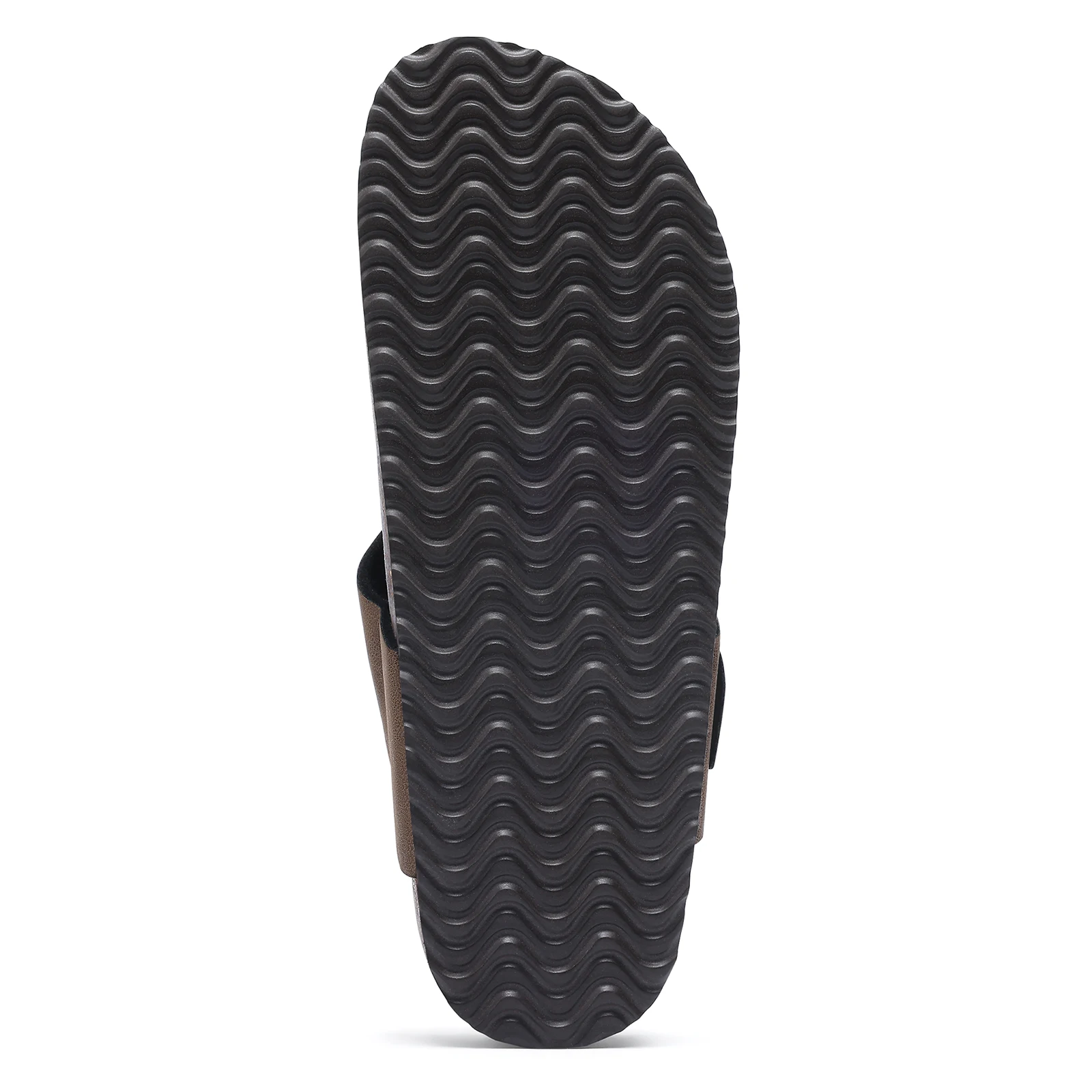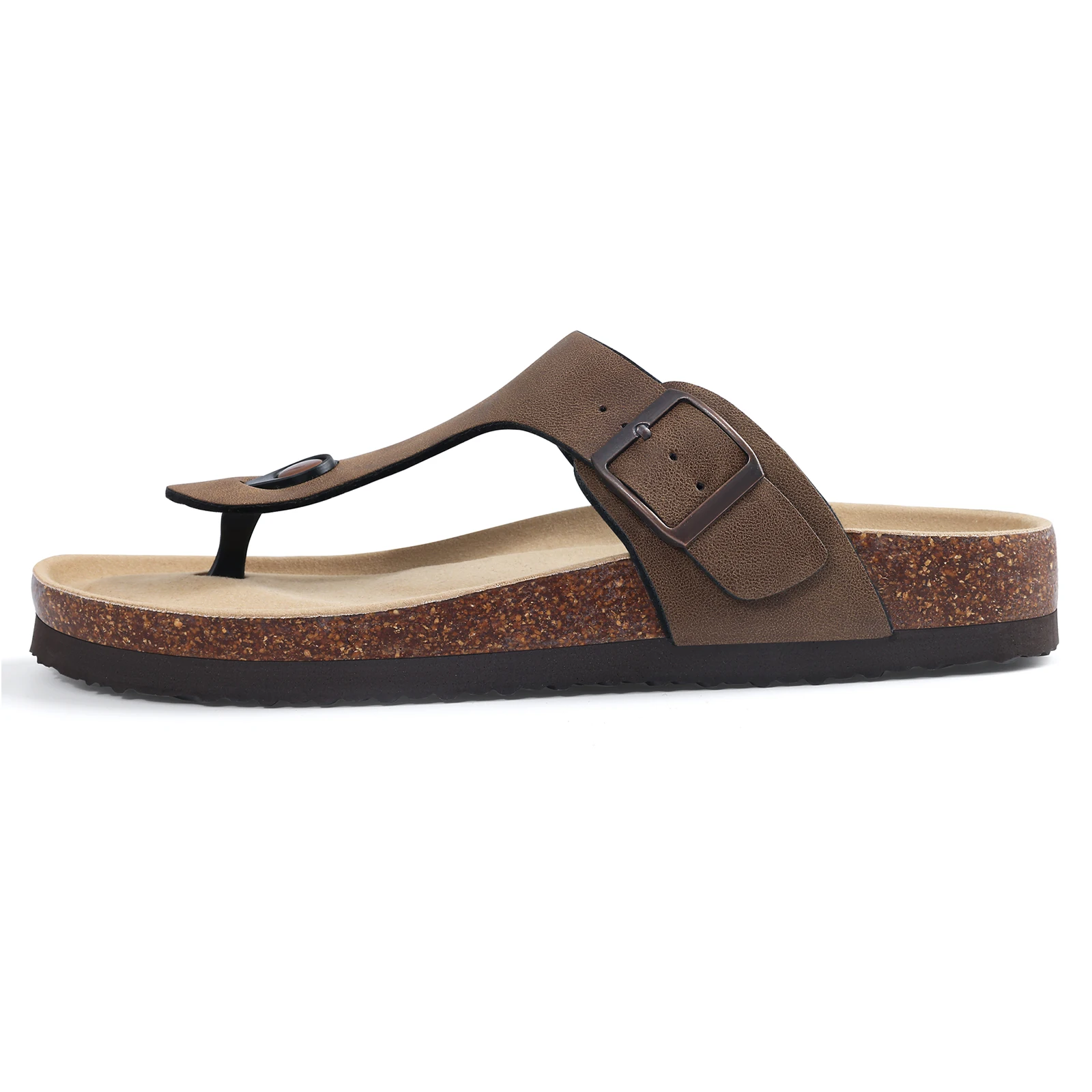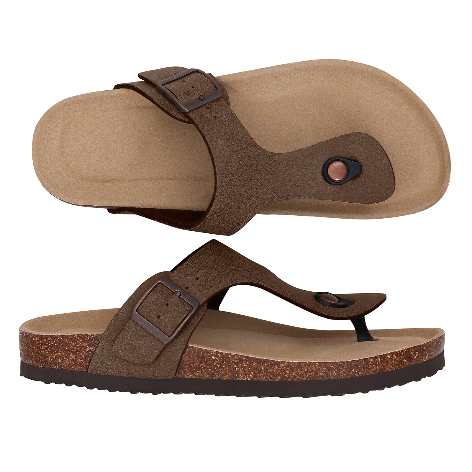 Gacimy Women Cork Sandals Fashion Summer Cork Footbed Flip Flops New Leather Flat Mules With Arch Support Outdoor Beach Slippers