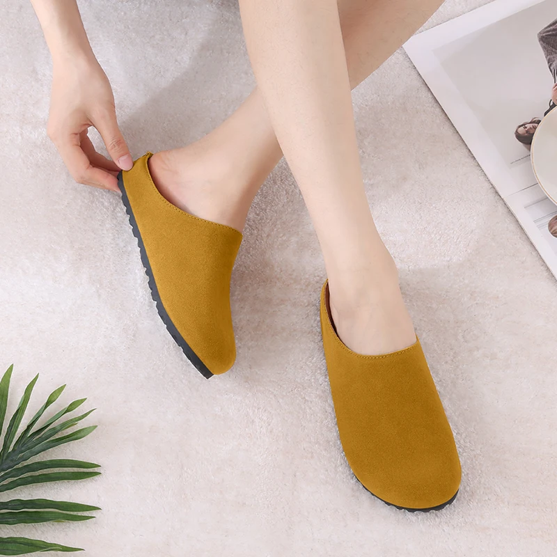 Gacimy Women’s Fashion Clogs Slippers New Suede Flat Mules Comfort Soft Bottom Slip On Beach Shoes Retro Lady House Clogs Sandal