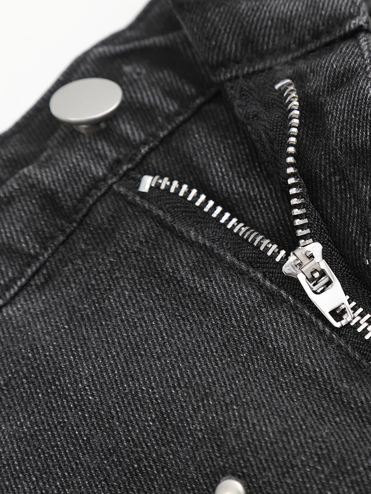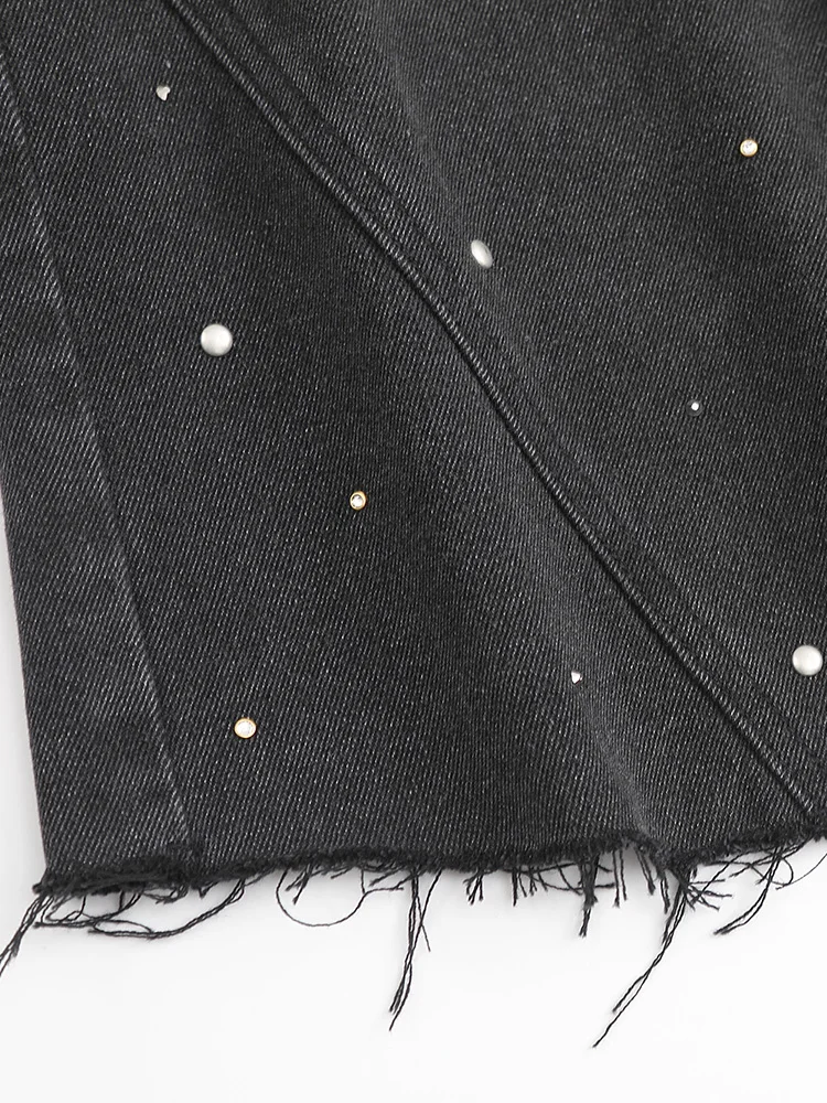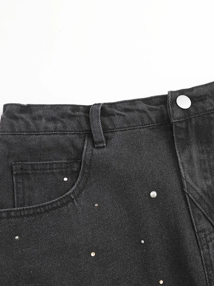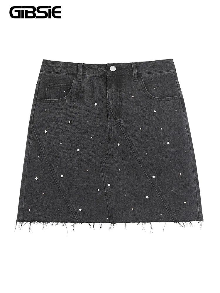 GIBSIE Plus Size Black rivet diamond denim skirt Women’s summer high waist korean retro a-line bodycon raw hem mini skirts