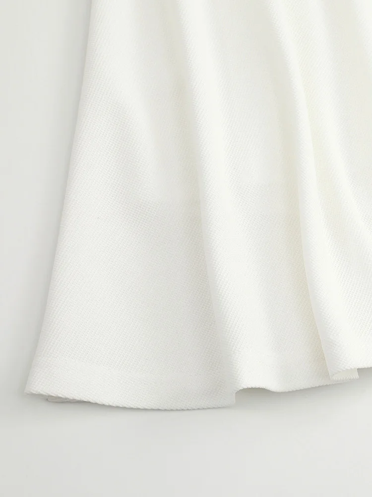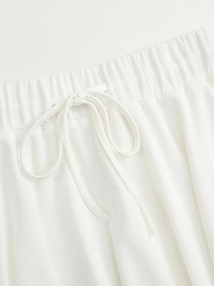 GIBSIE Plus Size Preppy Style Pleated Short Skirt Women Summer High Waist Drawstring Solid Waffle Casual A-line Mini Skirts