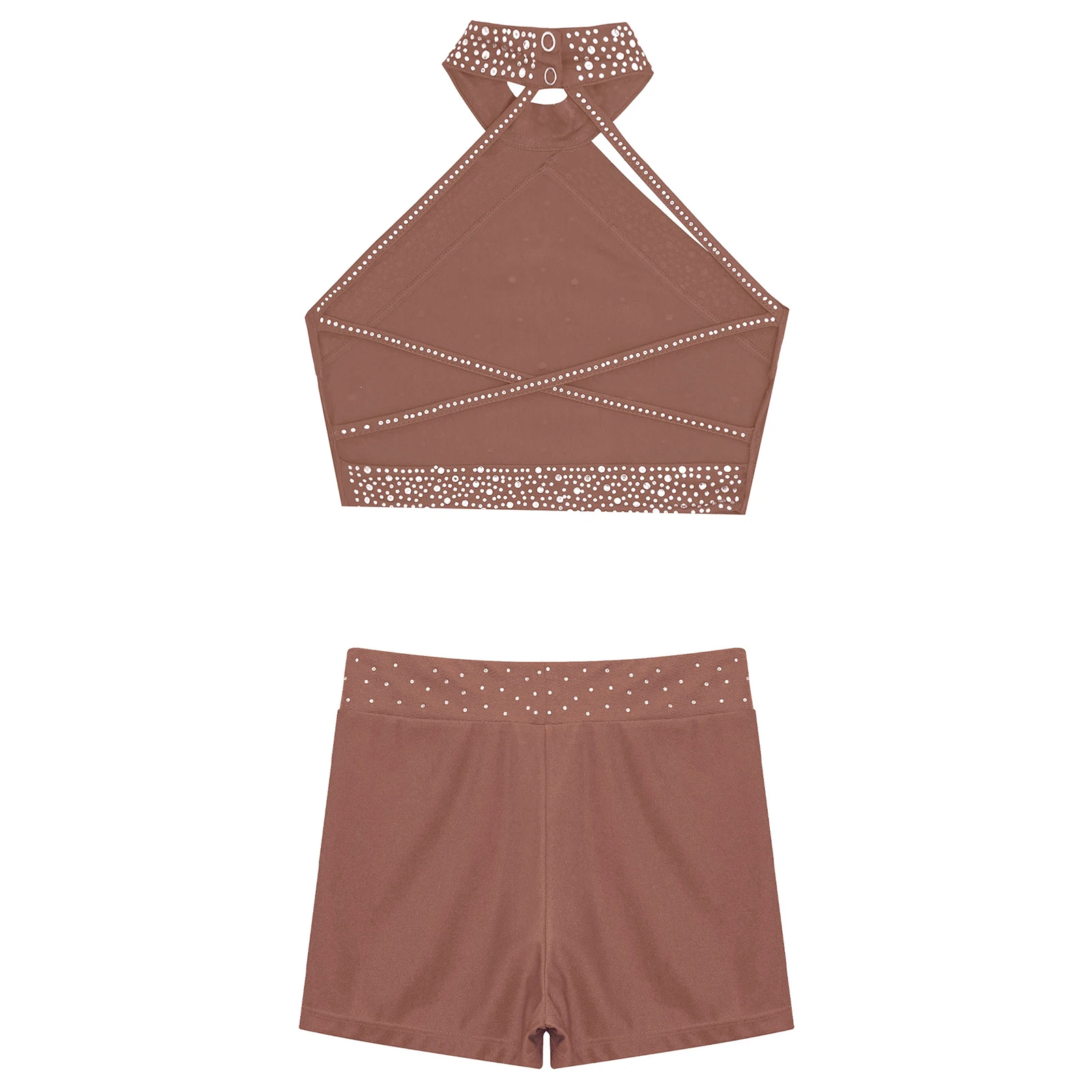 Girls Sparkly Rhinestones Lyrical Ballet Dance Dance Outfit Gymnastics Athletic Activewear Set Dancing Competition Performance