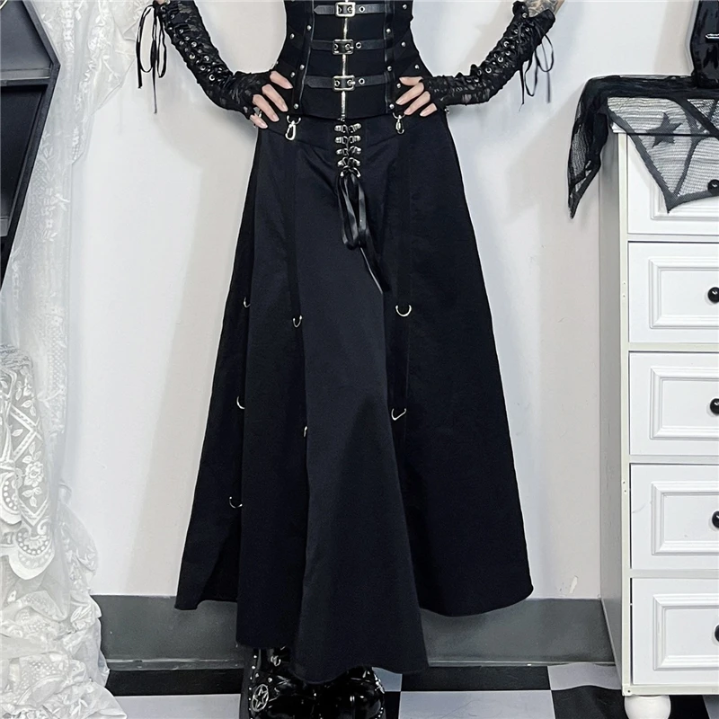 Goth Streetwear Gothic Skirt Women Harajuku Emo Alternative Grunge High Waist Bandage A-line Skirts Y2k E-girl Indie Clothes