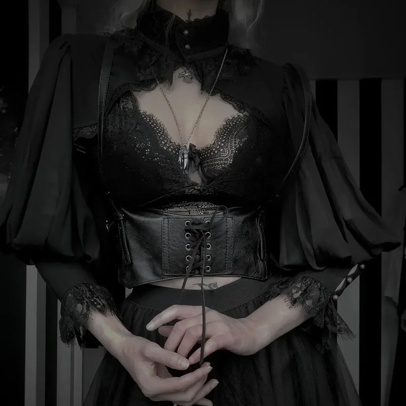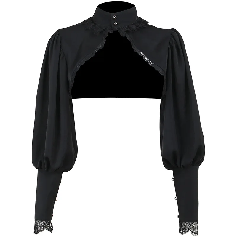 Gothic Lantern Sleeve Smock High Street Sexy Black Winter Long Sleeve Crop Top Aesthetic Fairy Blusas Mujer De Moda 2022
