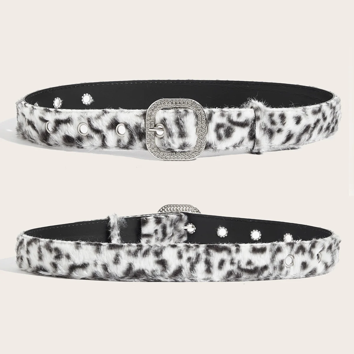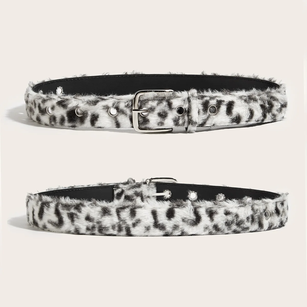Gothic Y2K Women Belts Fashion Artificial Vivid Animal Fur Waistband Ladies Hip hop Punk Accessories Pink Jeans Waistband winter