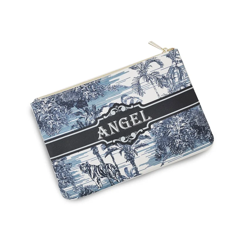 Graceful Customizable Name Women’s Canvas Clutch Makeup Bag Purse Party Weekend Vacation Travel Cosmetic Bag Mobile Pouch Wallet