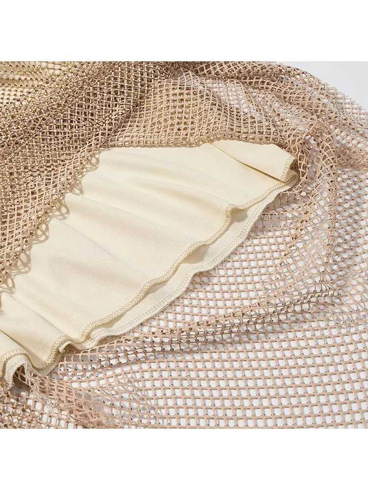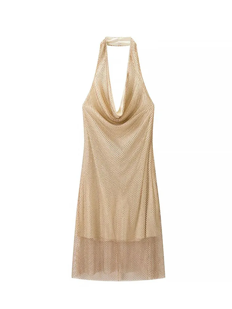 HH Women Summer Fashion Dresses Solid Swinging Collar Sleeveless Rhinestone Decoration Backless Zipper Female Sexy Mini Dress