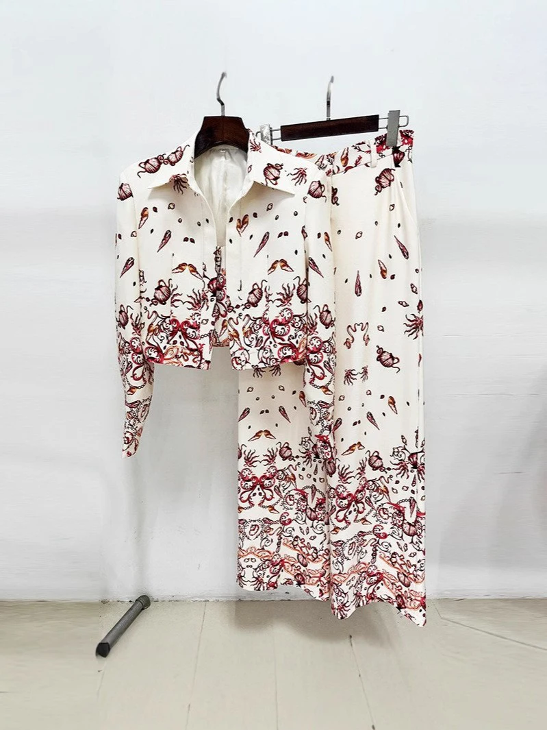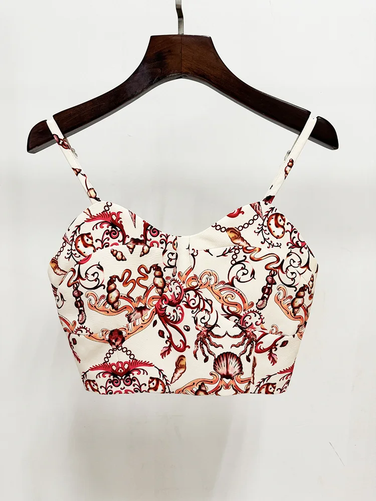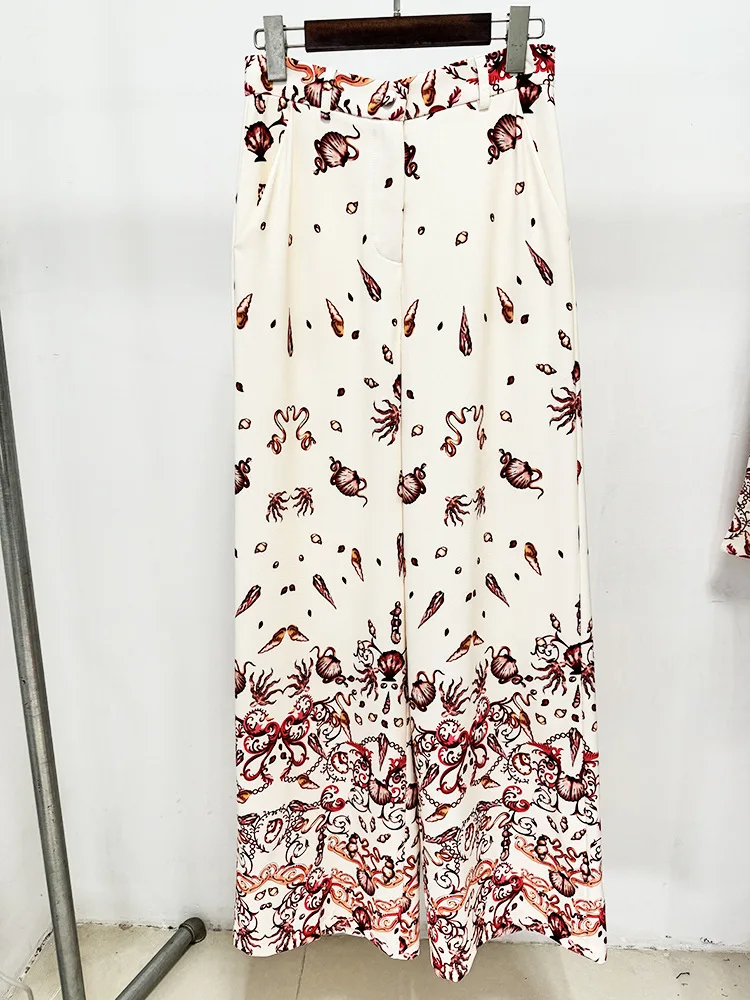 HIGH QUALITY New Fashion 2026 Designer Suit Set Women’s Sea World Printed Camis Cropped Jacket Pants Suit 3pcs Set