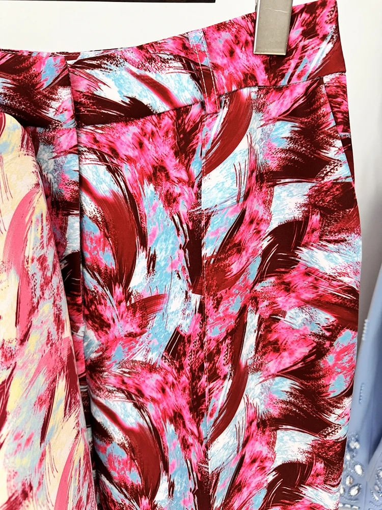 HIGH STREET Newest 2026 Designer Runway Suit Set Women’s 3/4 Sleeve Feather Printed Blazer Flare Pants Set 2pcs