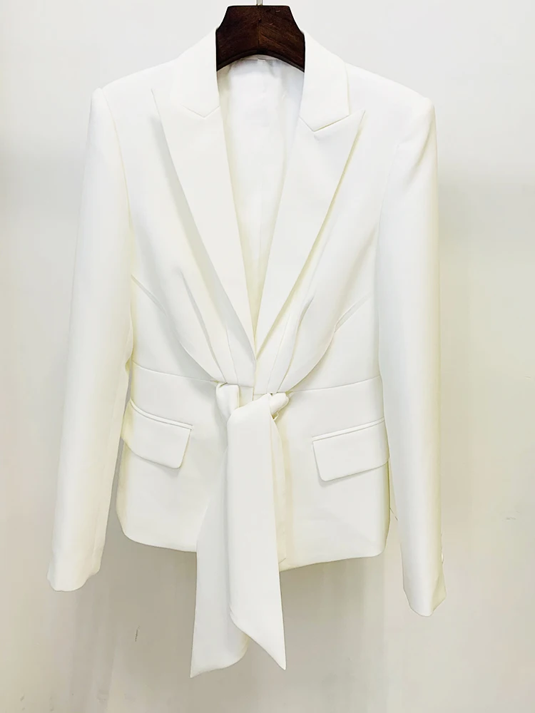HIGH STREET Newest 2026 Designer Runway Suit Set Women’s Lacing Belt Blazer Pleated Zip Pants Set 2pcs Set