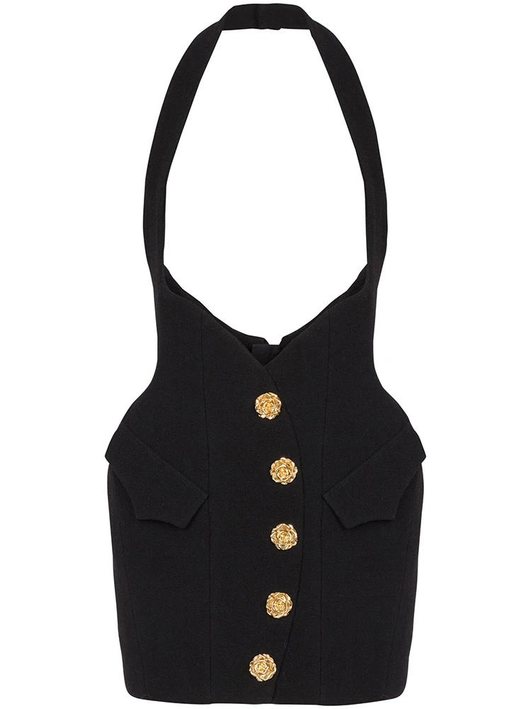 HIGH STREET Newest Fashion 2026 Designer Women’s Rose Metal Buttons Halter Skirt