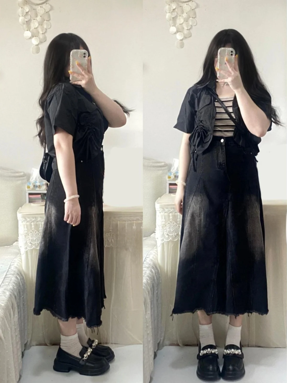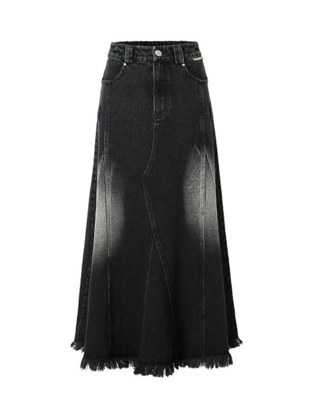 High Waist A-Line Denim Skirt for plus Size Women Korean Sle Commute Pear ape Body Design Sense Tassel Mid-Length Skirt