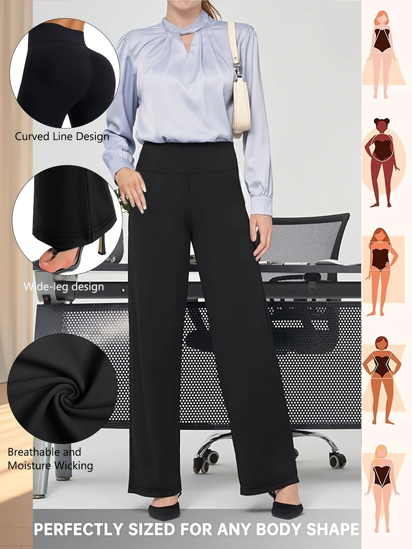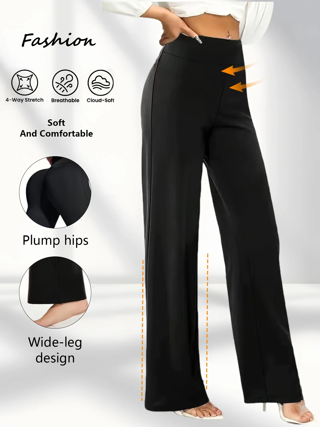 High Waist Booty Lifting Wideleg Women Casual Work Pants Comfortable Stretchy Fabric Elegant Commuter Style Wide Leg Trousers