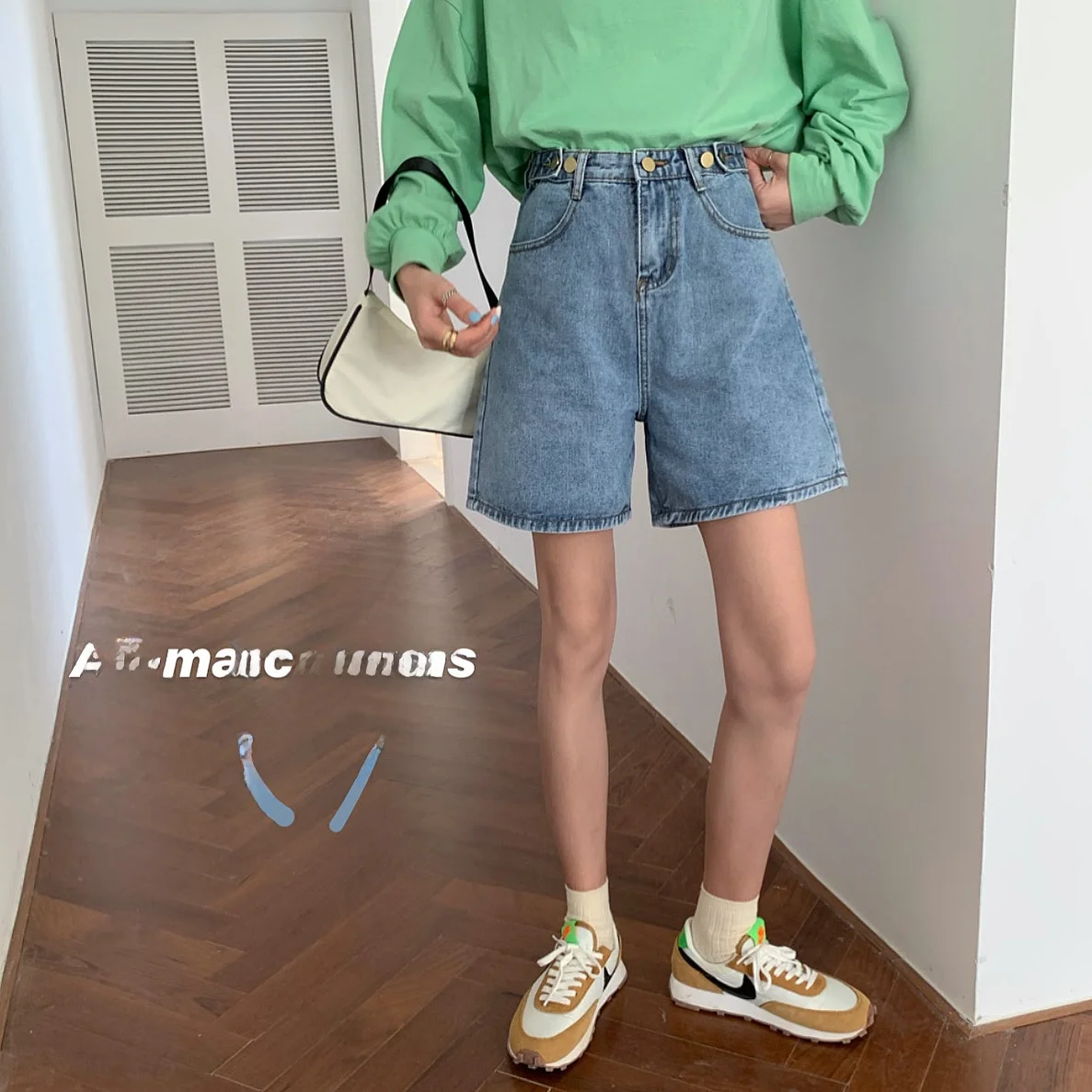 High Waist Denim Five-Quarter orts Women’s Spring Summer plus Size Slimming Loose Versatile Wide Leg A-Line Hot Pants