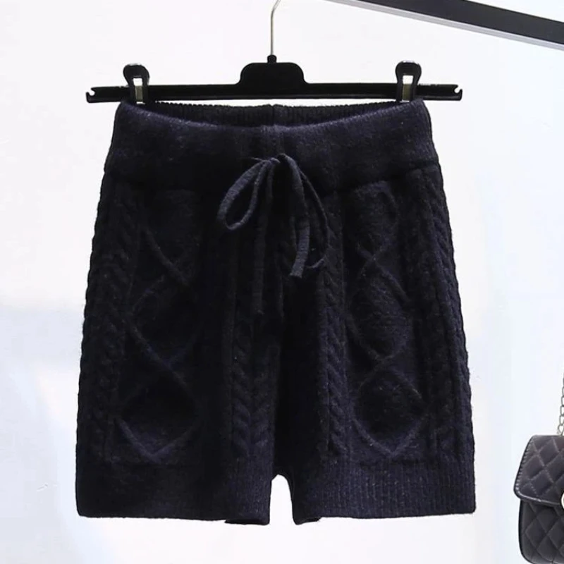 High Waist Drawstring Knitting Korean A-line Shorts Autumn Winter New Solid Simplicity Trend Shorts Casual Fashion Women Clothes