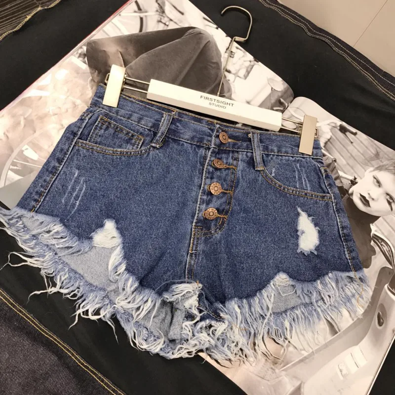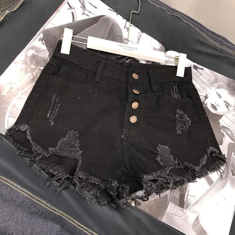 High Waist Tassel Broken Denim Shorts Women Summer Korean Version Raw Edge Wide Leg Loose Plus Size Jean Shorts Female