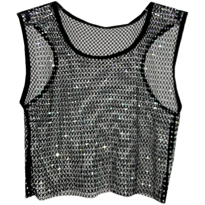 Hot Girl Y2k Small Vest Summer New H Vest with Short Vest and Shiny Women’s Round Neck Top
