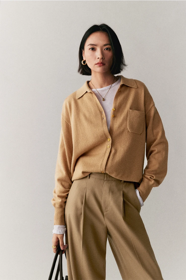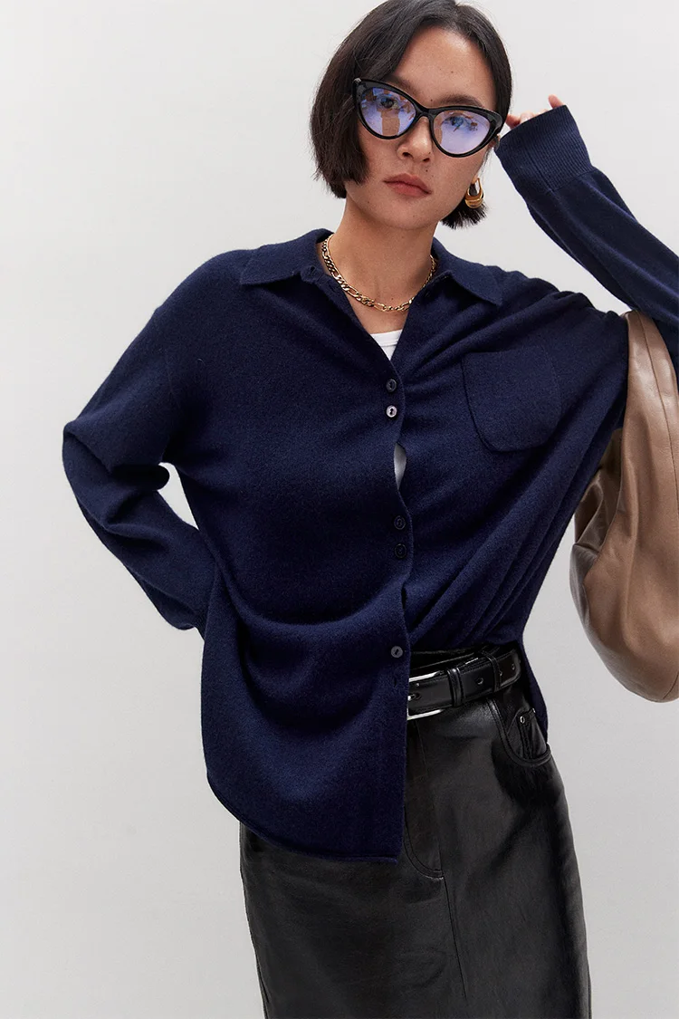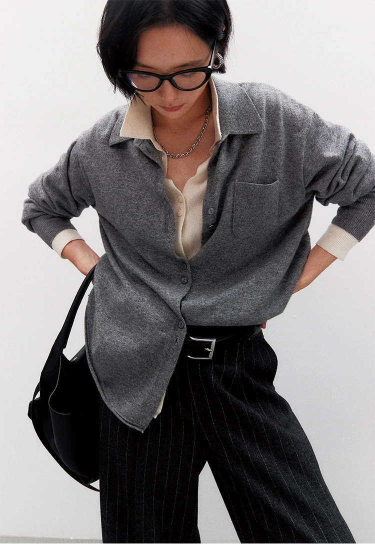 Intellectuals’ wonderful advanced Gao Zhi Tong Qin Lu wool cashmere OS knitted shirt