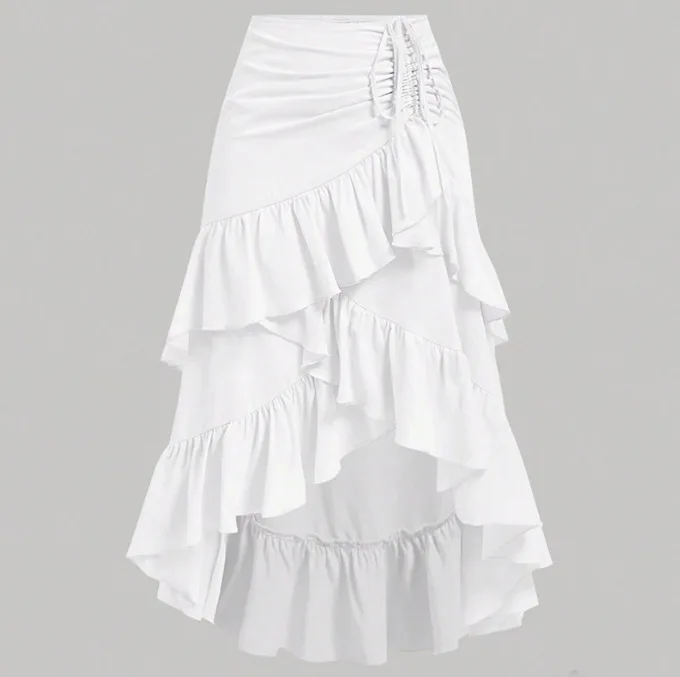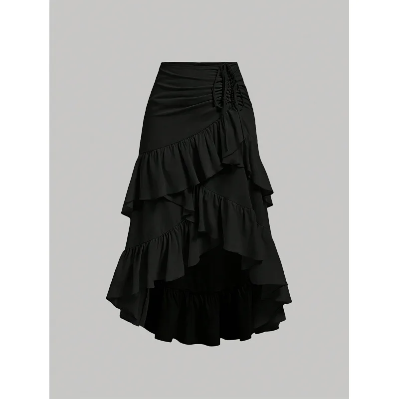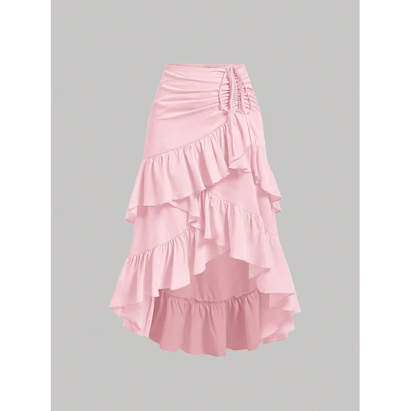 Irregular Ruffles Tiered Skirt Sweet Spicy Wind Layered Ruffle Edge Tied Skirt for Summer Holiday Sexy Elegant Women Beach Dress