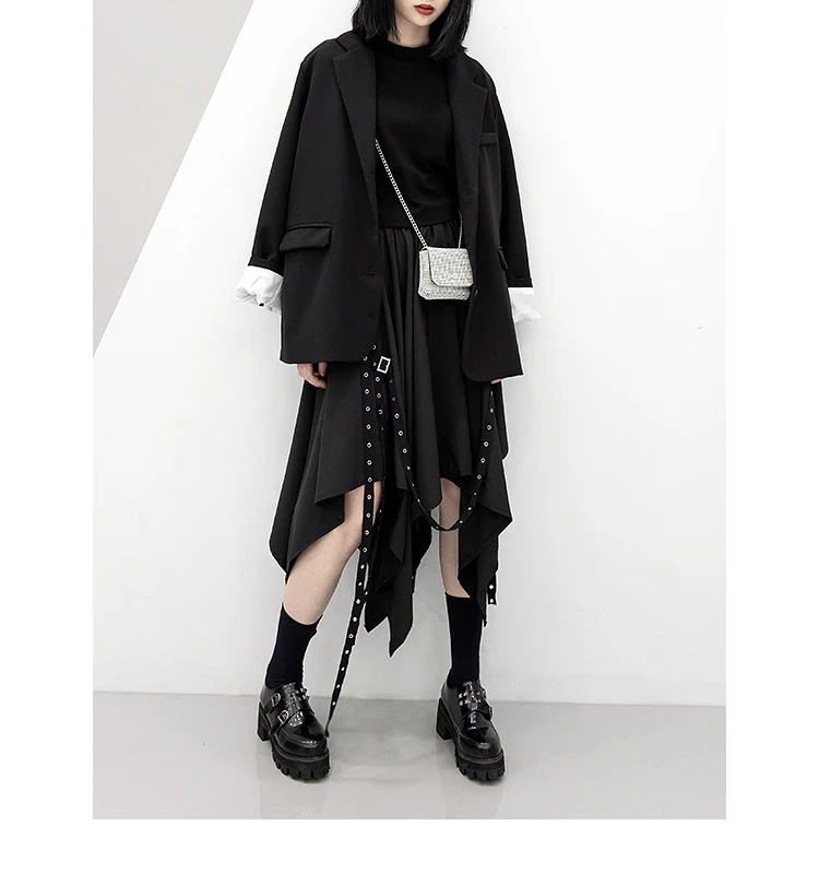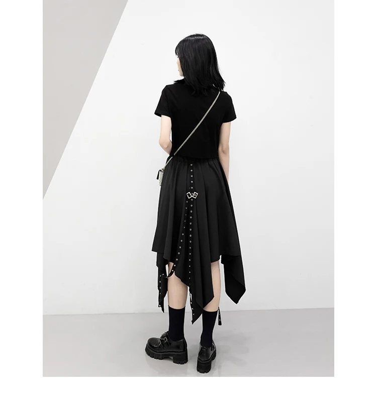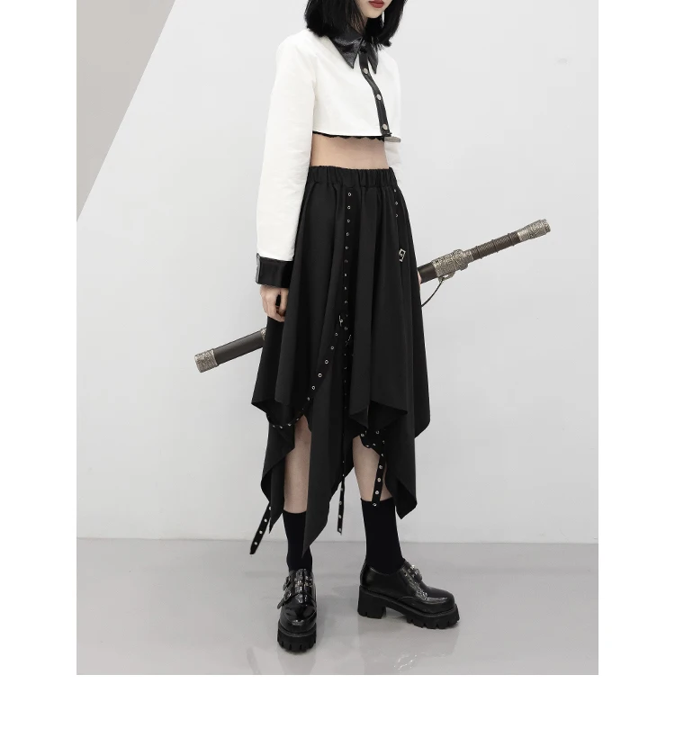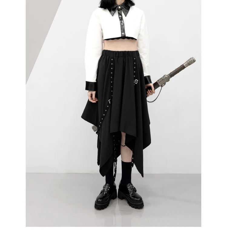 Irregular Skirt Girl’s New Dark Tie Street Punk Wind Weave Buckle Medium-length Y2k Gothic Long Skirt