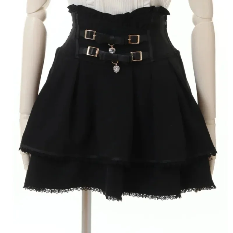 Japan Style High Waist Pleated Mini Skirts Bow Knot Design Mini Skirts Kawaii Slim Fit A-line Skirts Pink Lace Skirts For Women