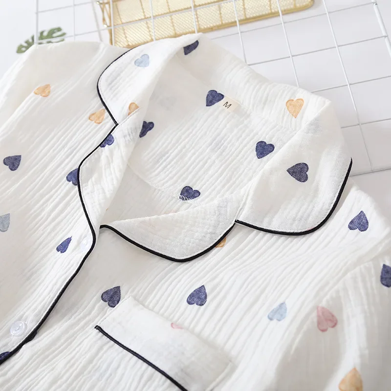 Japanese summer new ladies cotton gauze short sleeve shorts pajamas suit cute heart-shaped thin section home service suit woman