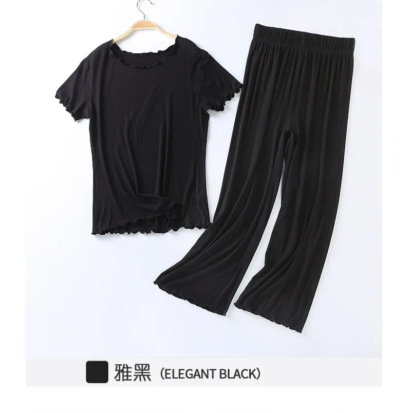 Japanese summer new ladies cotton modal short-sleeved nine-point pants suit home service suit women’s large size home pajamas