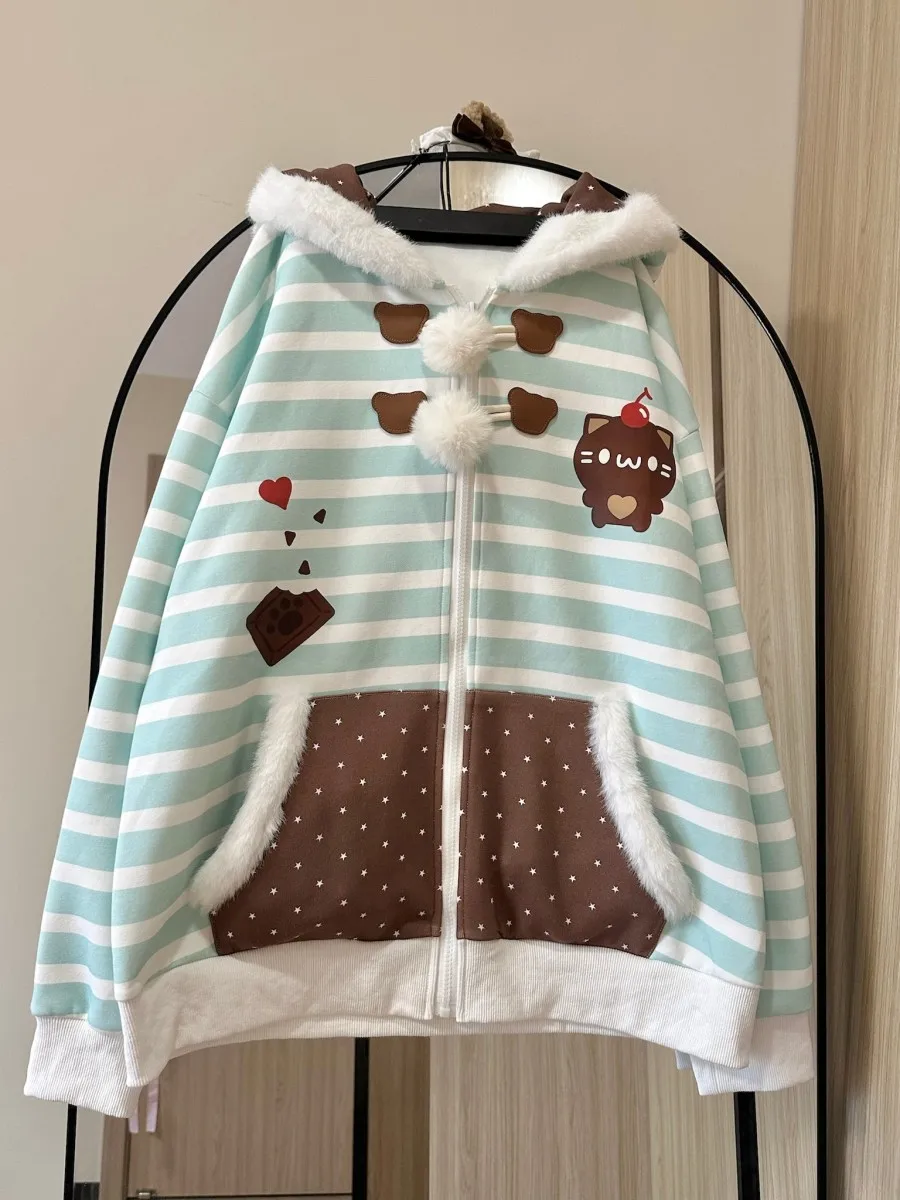 16 reviews for Japanese Sweet Coats Y2K Clothing Hoodie Women Tops Autumn and Winter Color Match Splicing with Thick Velvet Cardigan Jackets